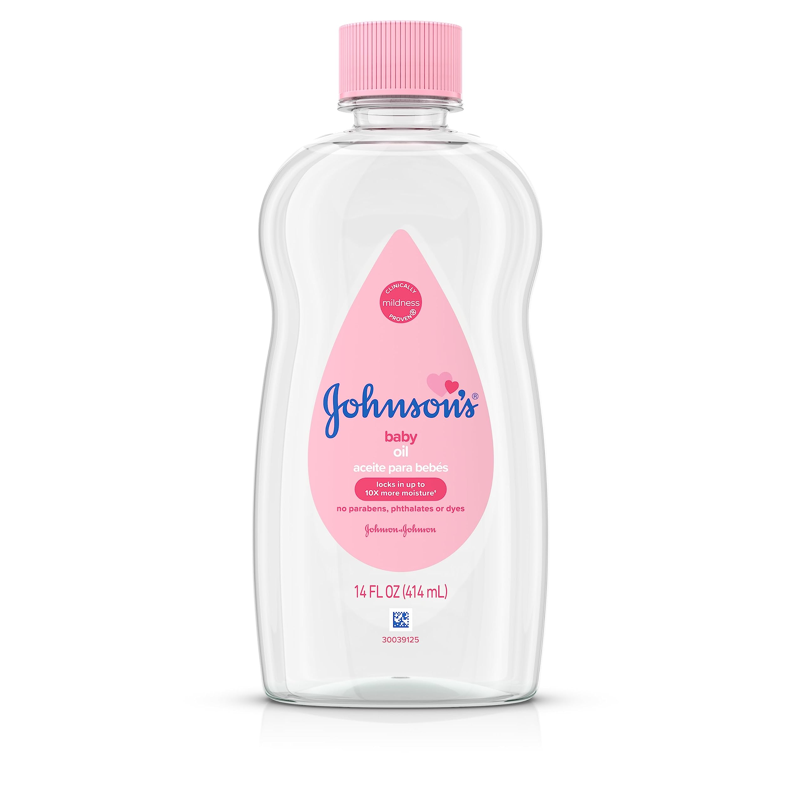 14-fluid ounce bottle of Johnson's Baby Oil, pure baby mineral oil in an original scent formulated to help moisturize baby's delicate skin, and gently helps to protect skin from dryness, great for relieving dry skin or rough patches