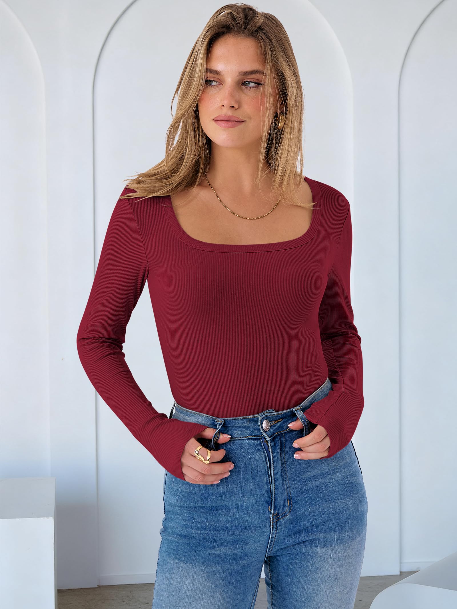Fit Type - ANRABESS Bodysuits for Women Long Sleeve Tops are lightweight and comfortable with a Slim fit, paired with soft ribbed knit for easy everyday style.