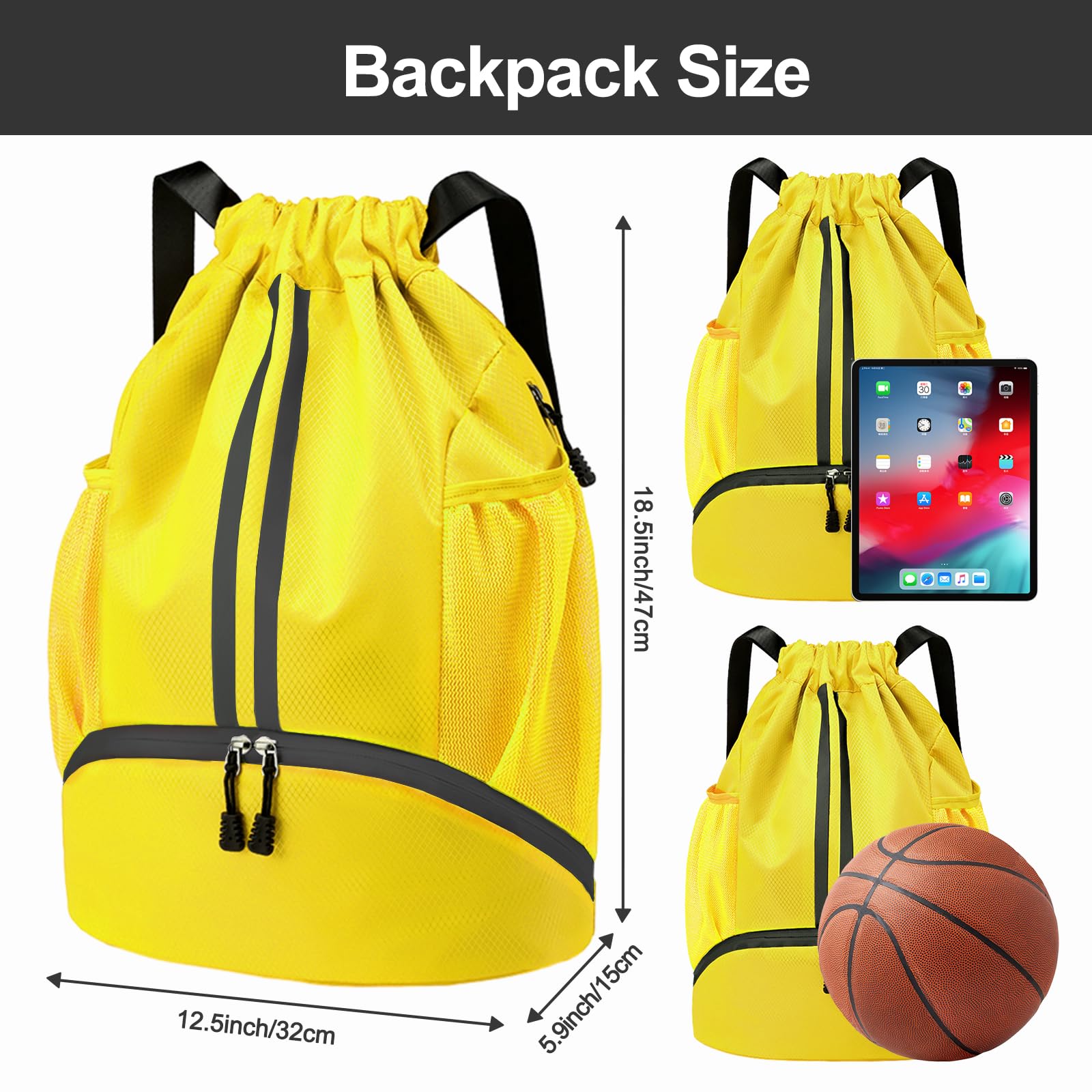 Large Capacity: The spacious space of this sports backpack ensures that you can carry training equipment, swim gear, beach items, all the essentials you need for workout. A basketball can be easily put in this bag without worrying about running out of space