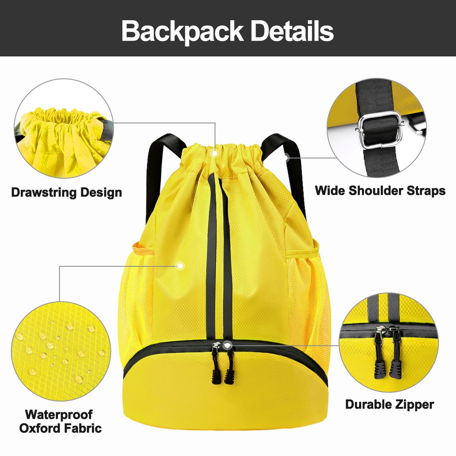 Water-Proof Material: The Hoedia Drawstring Backpack is perfect for gym and swim enthusiasts as it is made of durable water-resistant oxford cloth, keeping your belongings safe and dry