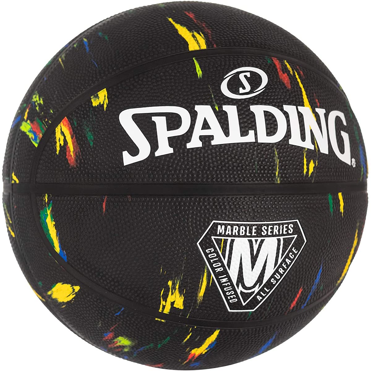 Made for players who create their own lane, The Spalding Marble Series Black Multi-Color Outdoor Basketball shakes free from convention with a unique marble print. Aside from the durable outdoor cover and embossed logos, no two balls in the series are the same.