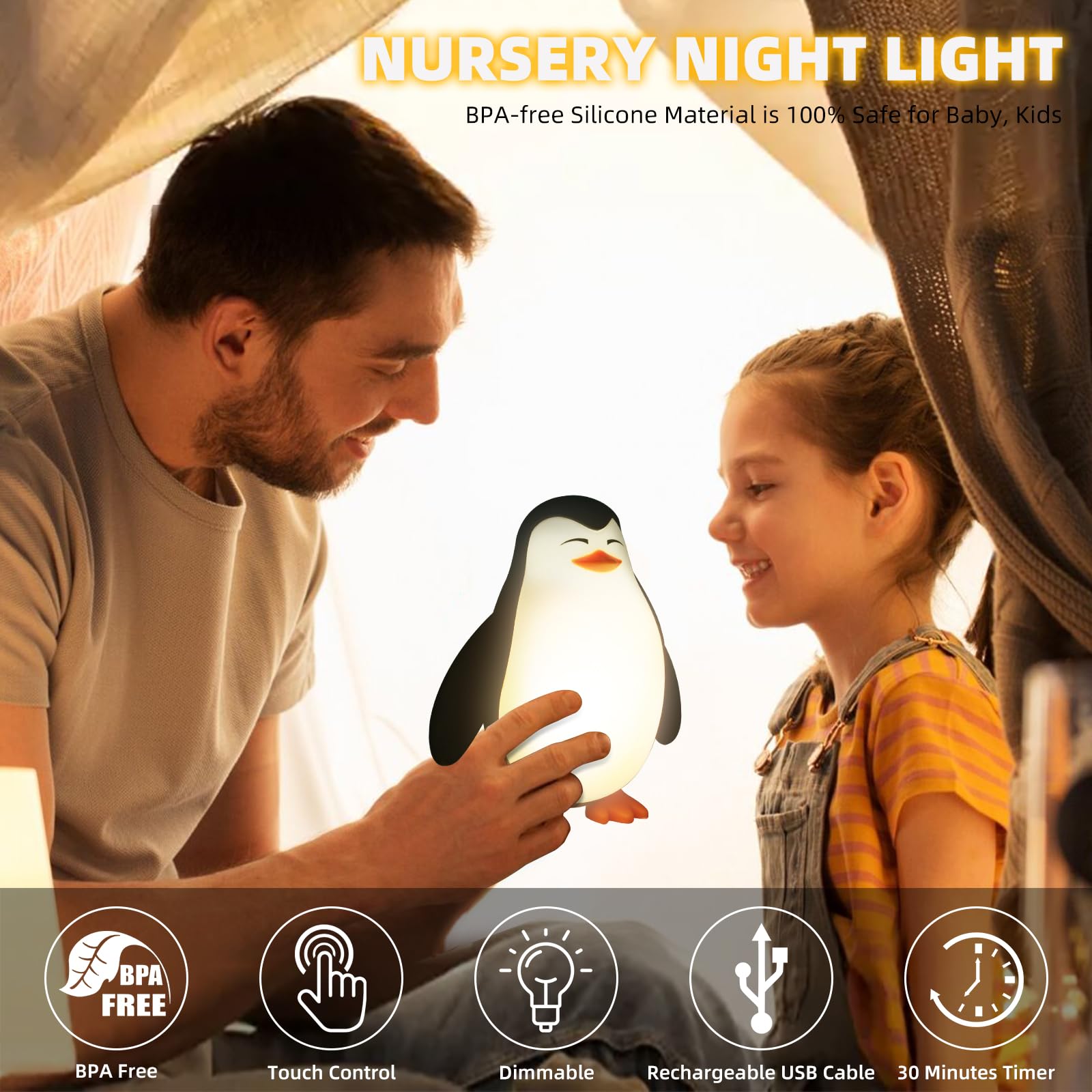 【Cute Lighted Penguin Gift for Kids】This 2025 Upgraded Standing/Lying cute penguin night light for kids creates a cozy atmosphere, can soothe child to say goodbye to bedtime struggles without fear of the dark and quickly feel asleep. The baby night light for kids & toddler bedside lamp makes perfect nightlight for kids room. Perfect gifts for Birthday, Children's Day, Christmas, Bedroom, dormitory, office, party decorations