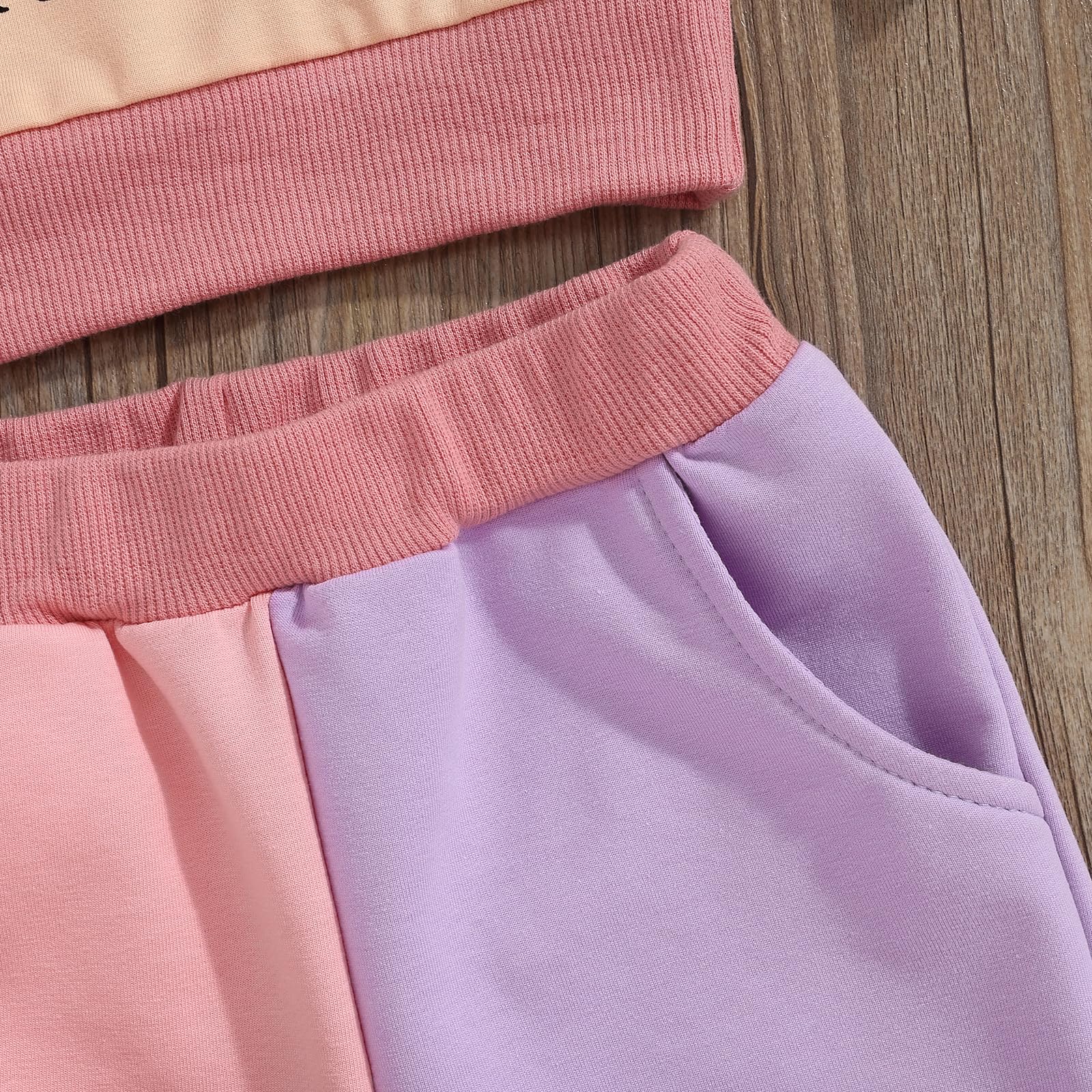 Feature: Toddler girl fall clothes have unique color block and letter print, make your princess more adorable and trendy! Baby girl sweatsuit set is best gift for kids on birthday, graduation, Halloween, Christmas.