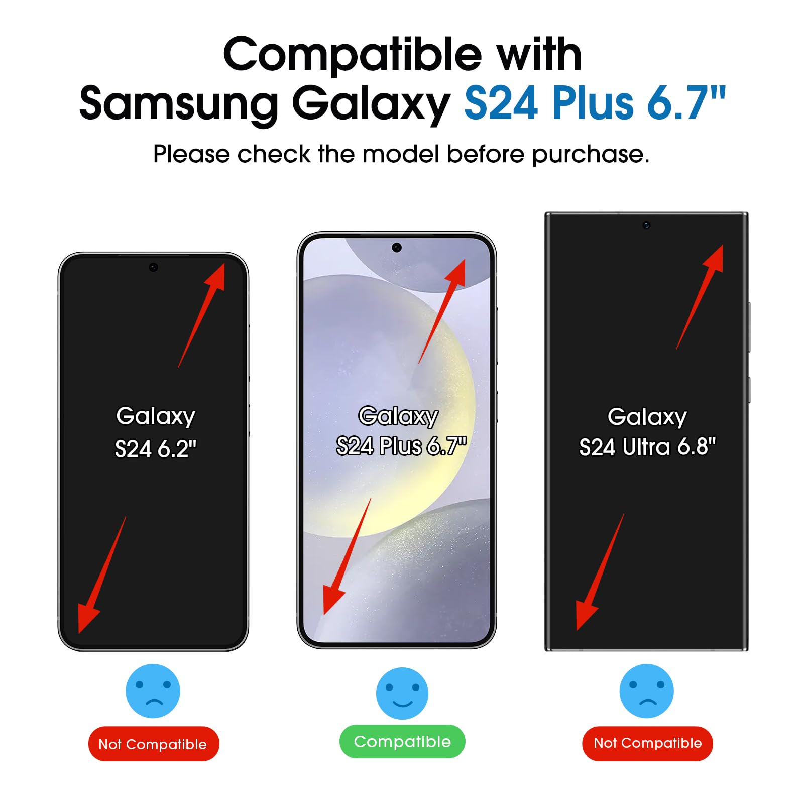 【Only Compatible with Samsung Galaxy S24 Plus 6.7"】 Specially designed ONLY for the Samsung Galaxy S24 Plus Screen Protector 6.7". Please check your phone model before buying this tempered glass screen protector.
