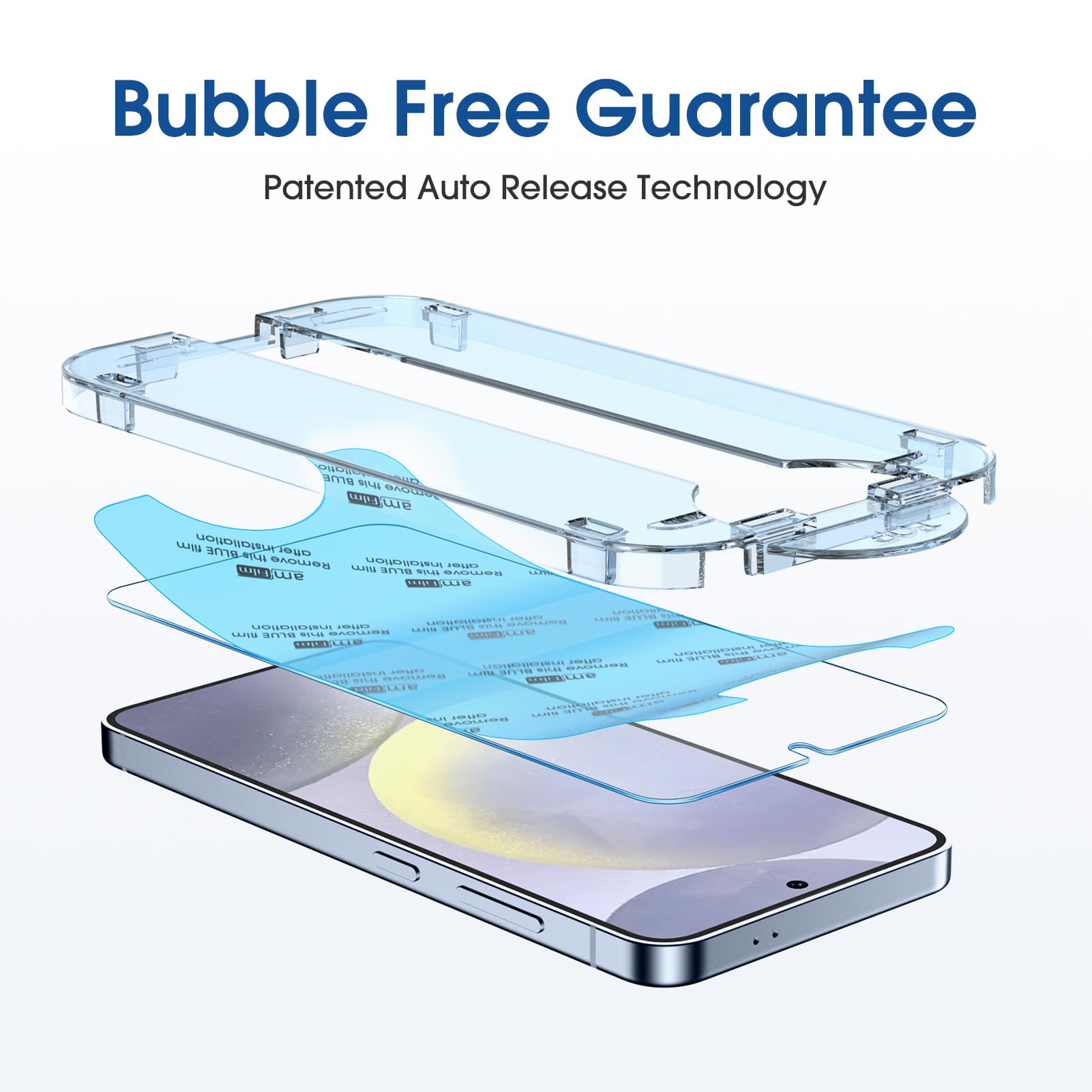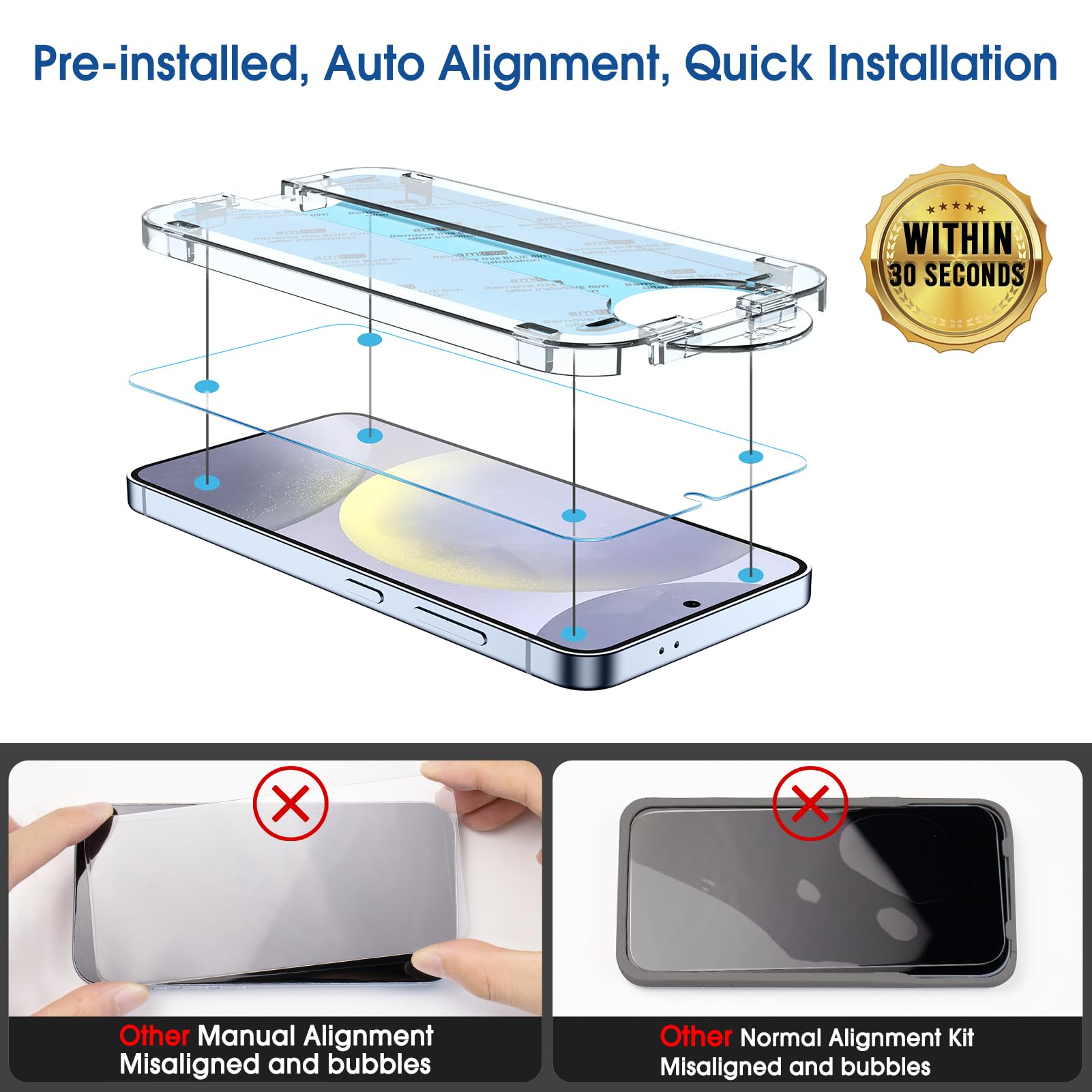 【Auto-alignment within 30 Seconds!】 Say goodbye to manual misalignment, the Samsung Galaxy S24 Plus 6.7" screen protector is embedded in a plastic frame that fits perfectly over your phone. Set the frame on your phone, swipe down the middle, and done! Perfect installation within 30 seconds! Watch our Installation Video to see how easy it is to use our Innovative OneTouch Auto-Alignment Screen Protector.