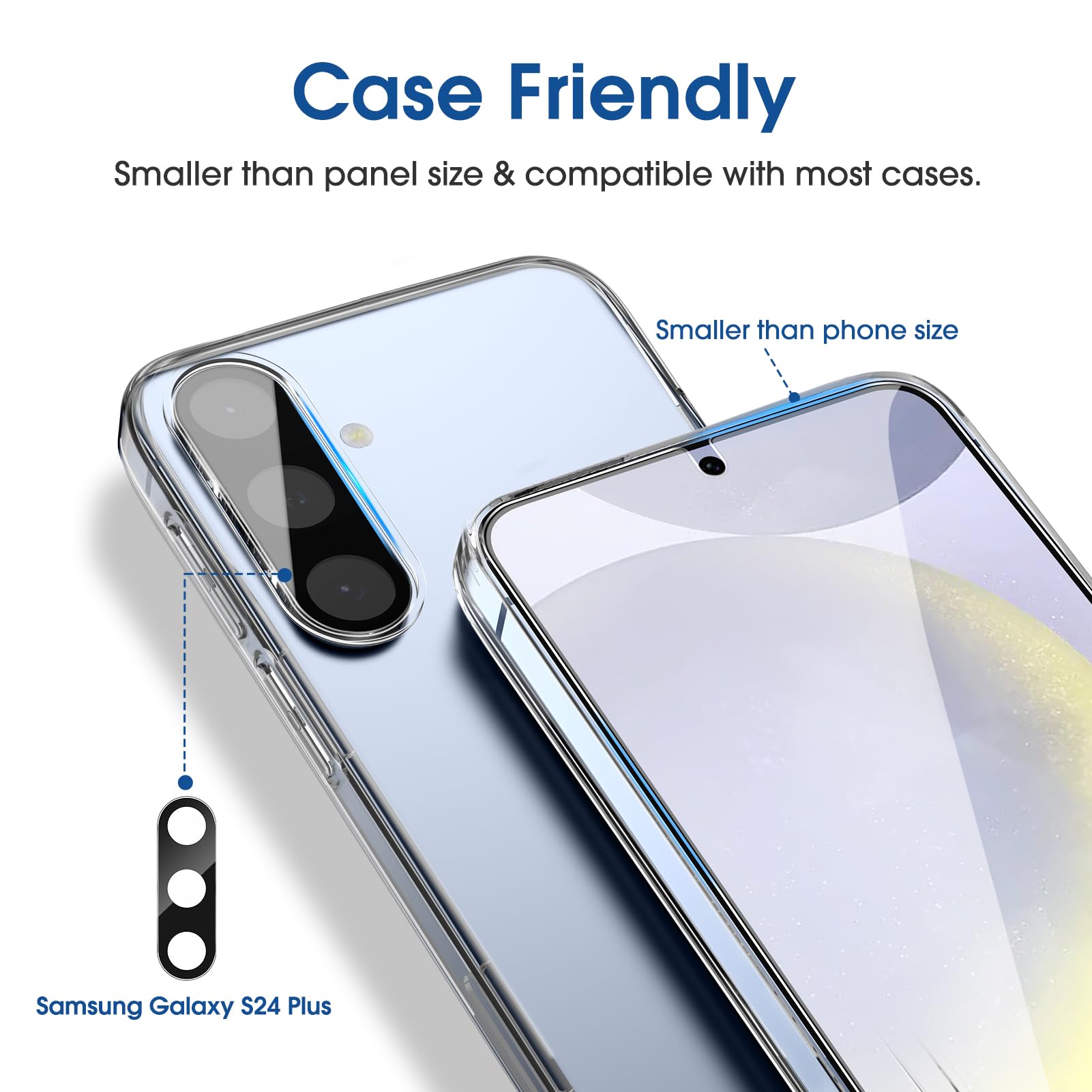 【2+2 Pack】 2* Samsung Galaxy S24 Plus 6.7" Screen Protectors, 2* Camera Lens Protectors, with 2 auto alignment tool kit (screen protectors come pre-installed in the auto alignment tool) and cleaning kits. Everything you need for a perfect installation!