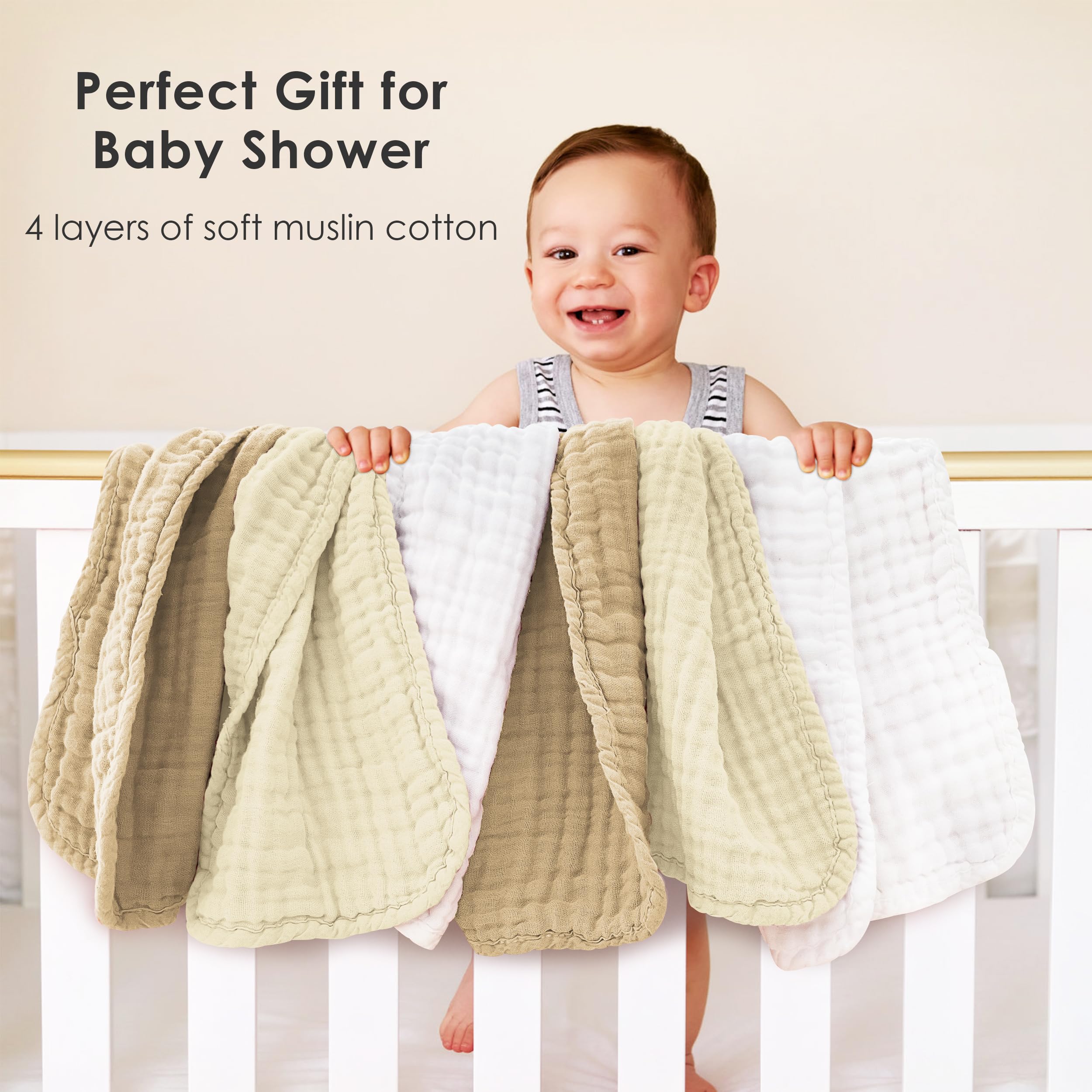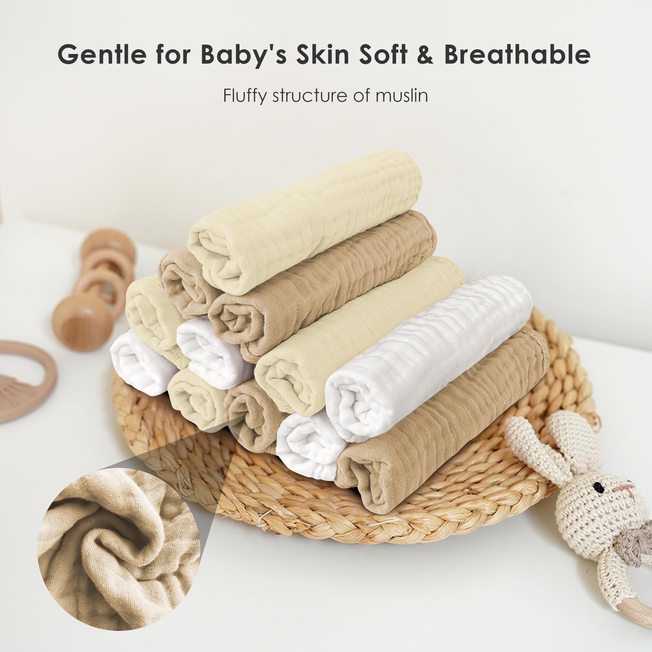 ๐ Versatile Baby Essentials: Featuring a gender-neutral color palette, our muslin burp cloths make a thoughtful gift for baby showers, baby registry, birthdays, or Christmas holidays. They can be used as burp rags, washcloths, towels, wipes, and more, making them a must-have for teething babies and mess-free parenting.