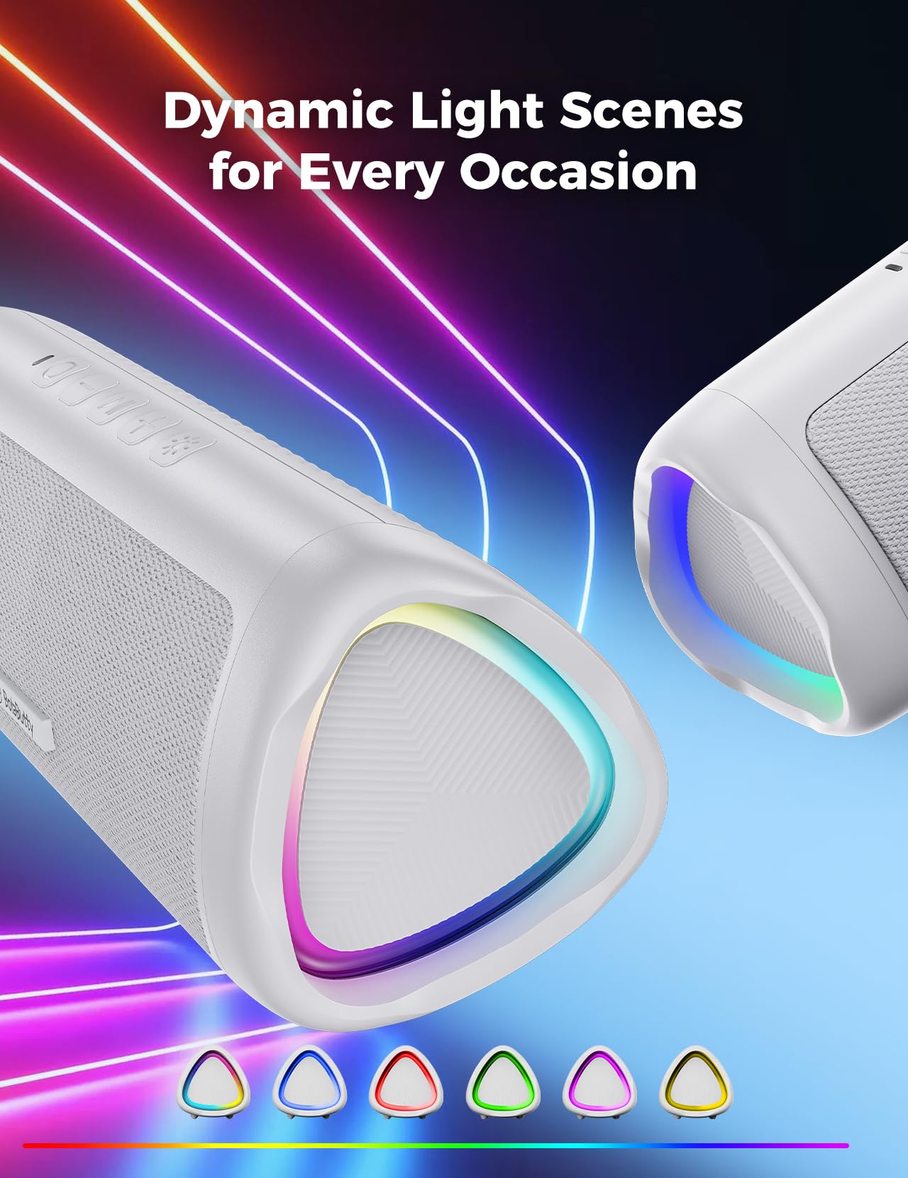 [Long-lasting Playtime & Extended Bluetooth Connectivity] Experience extended playtime with up to 20 hours(50% Vol and light off) per charge and extended wireless range with Bluetooth 5.3, reaching up to 33 feet from your device. The multicolor lights on the speaker can also be turned off with a simple button press to save the battery and adapt to your needs. Keep in mind that the actual playtime can vary depending on volume level, audio content, and usage