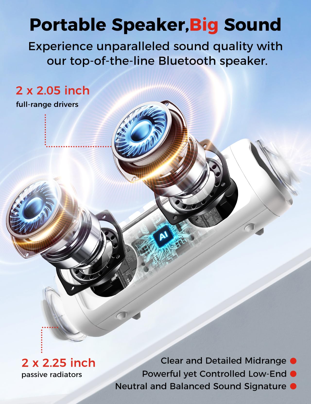 [Immersive Sound Experience & Dual Connectivity] Experience unparalleled sound quality with this wireless Bluetooth speaker's 2 drivers and advanced technology that delivers powerful, well-balanced sound with minimal distortion. Connect two speakers together to create an immersive stereo sound experience and fill any room with powerful sound. Perfect for gaming, music, and movie playback