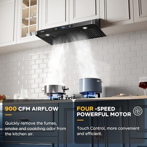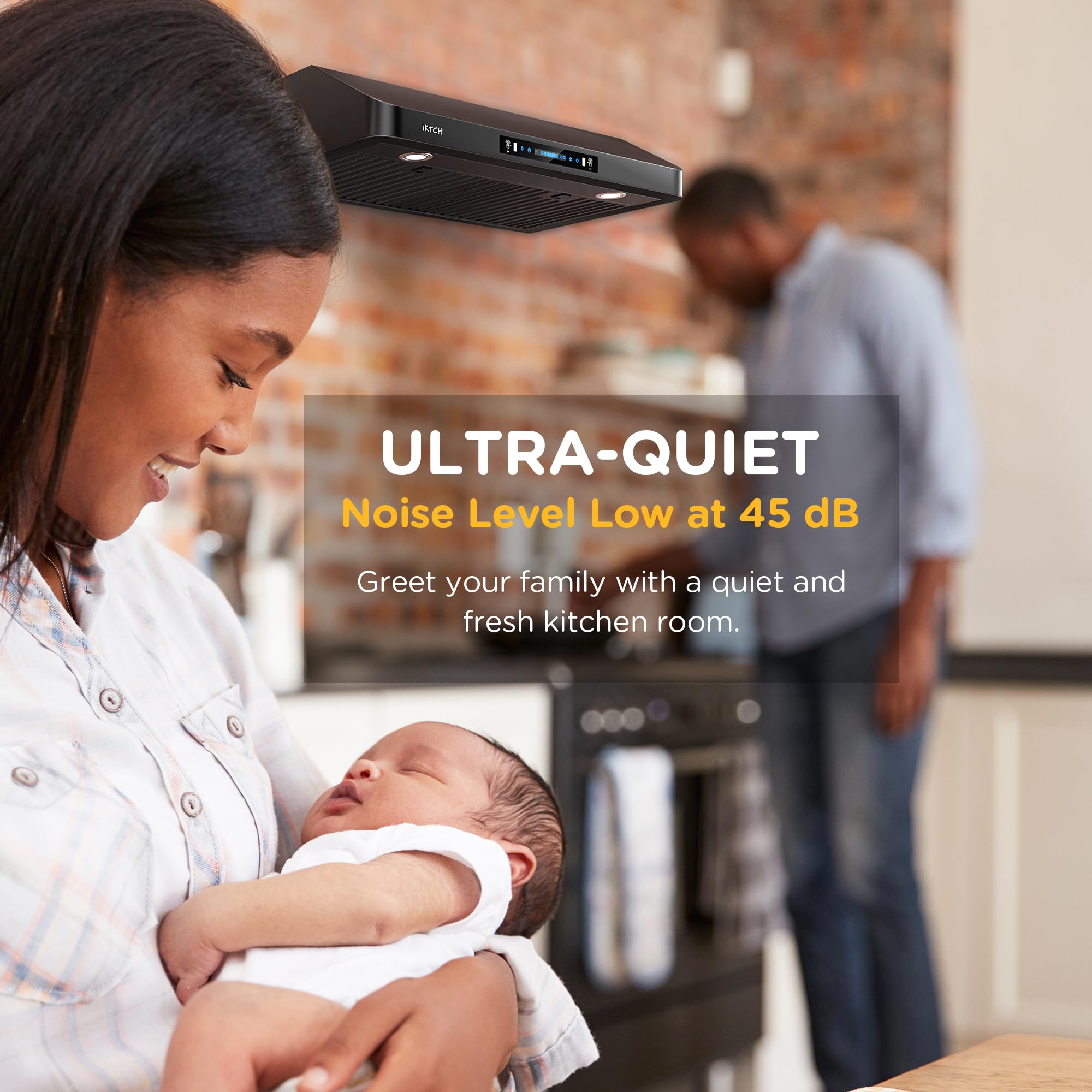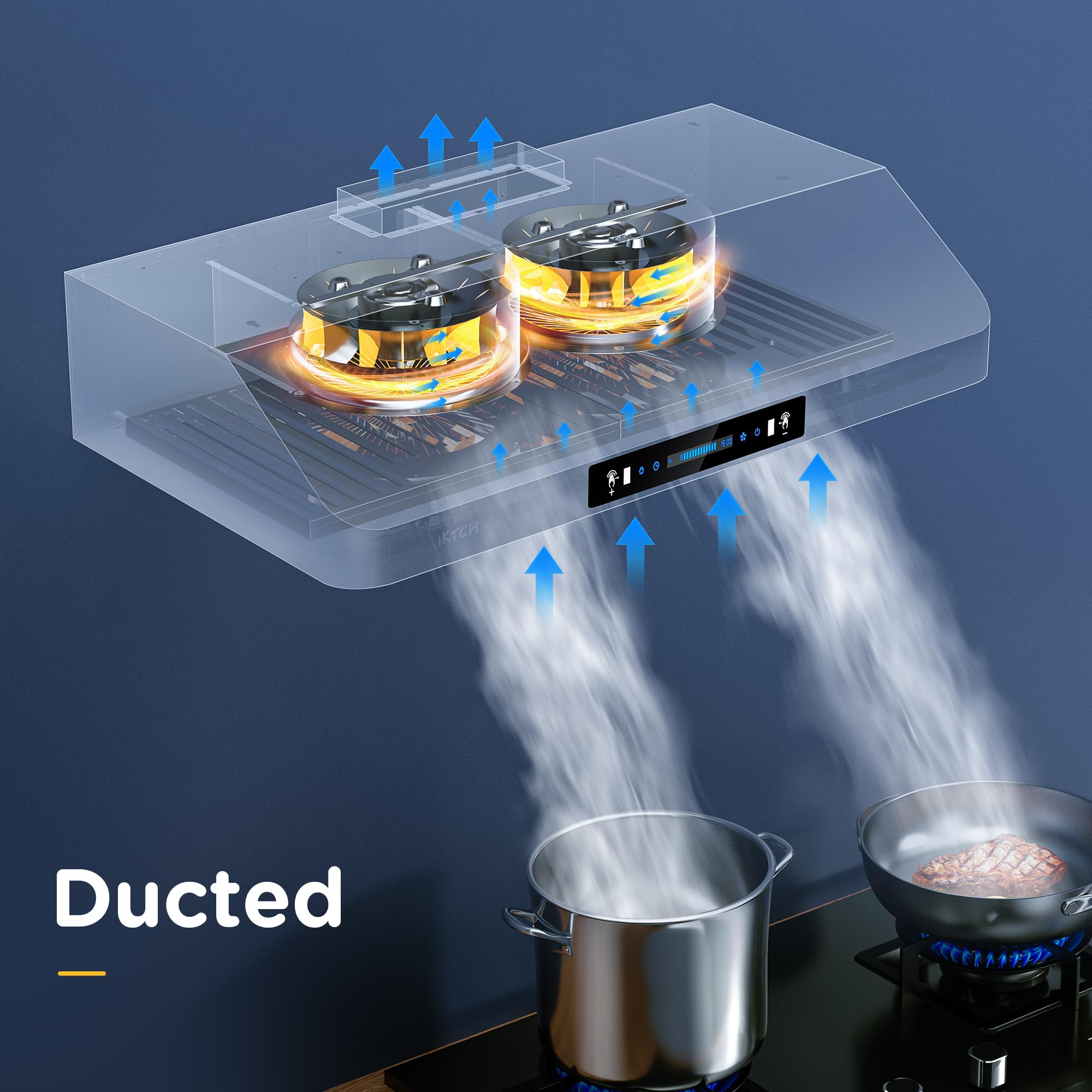 Ultra-Quiet Operation: Enjoy a peaceful cooking environment with noise levels kept below 65DB even at high speed. Equipped with a high-performance 4-speed motor, it ventilates your kitchen efficiently yet quietly, eliminating cooking fumes and odors without disrupting your daily life or conversations