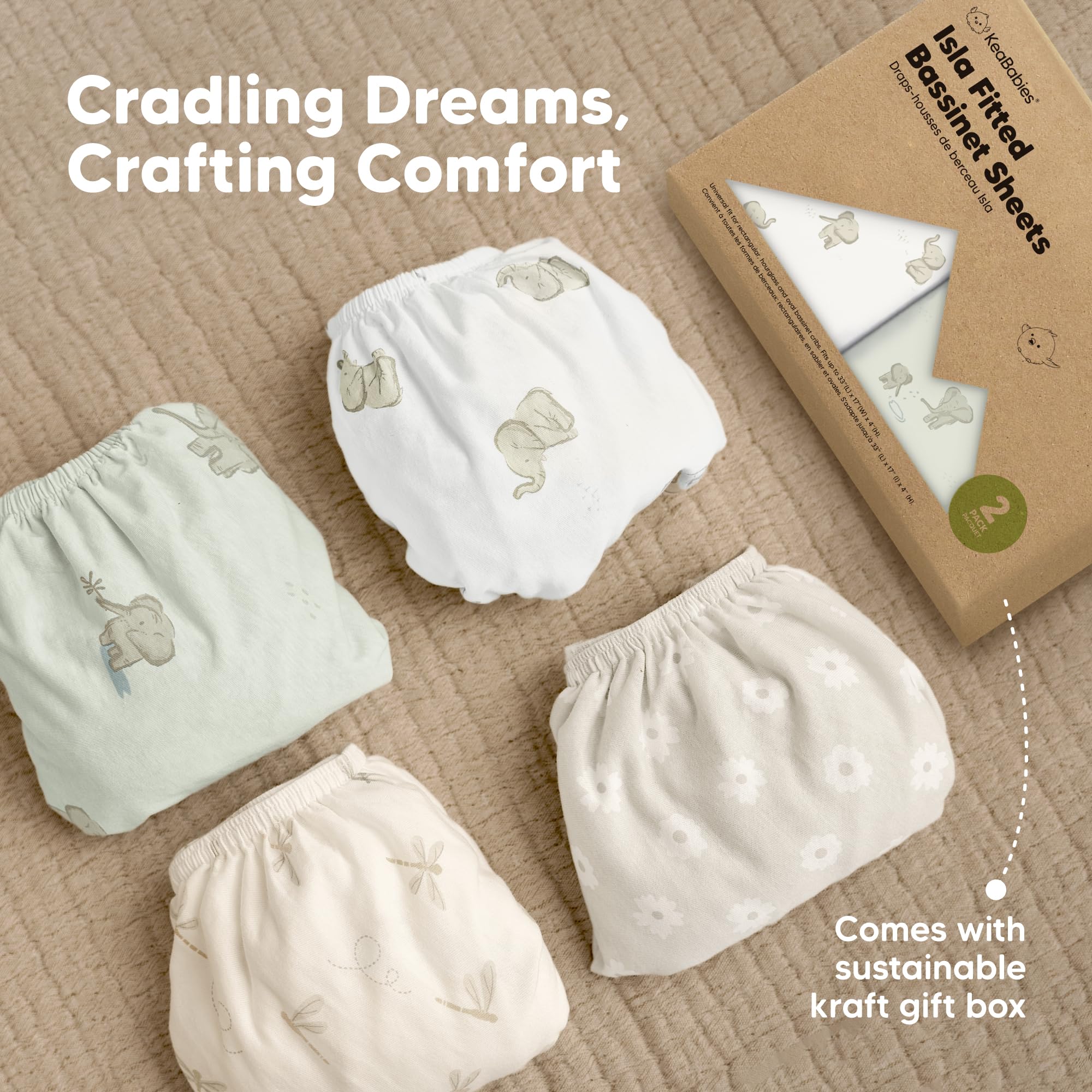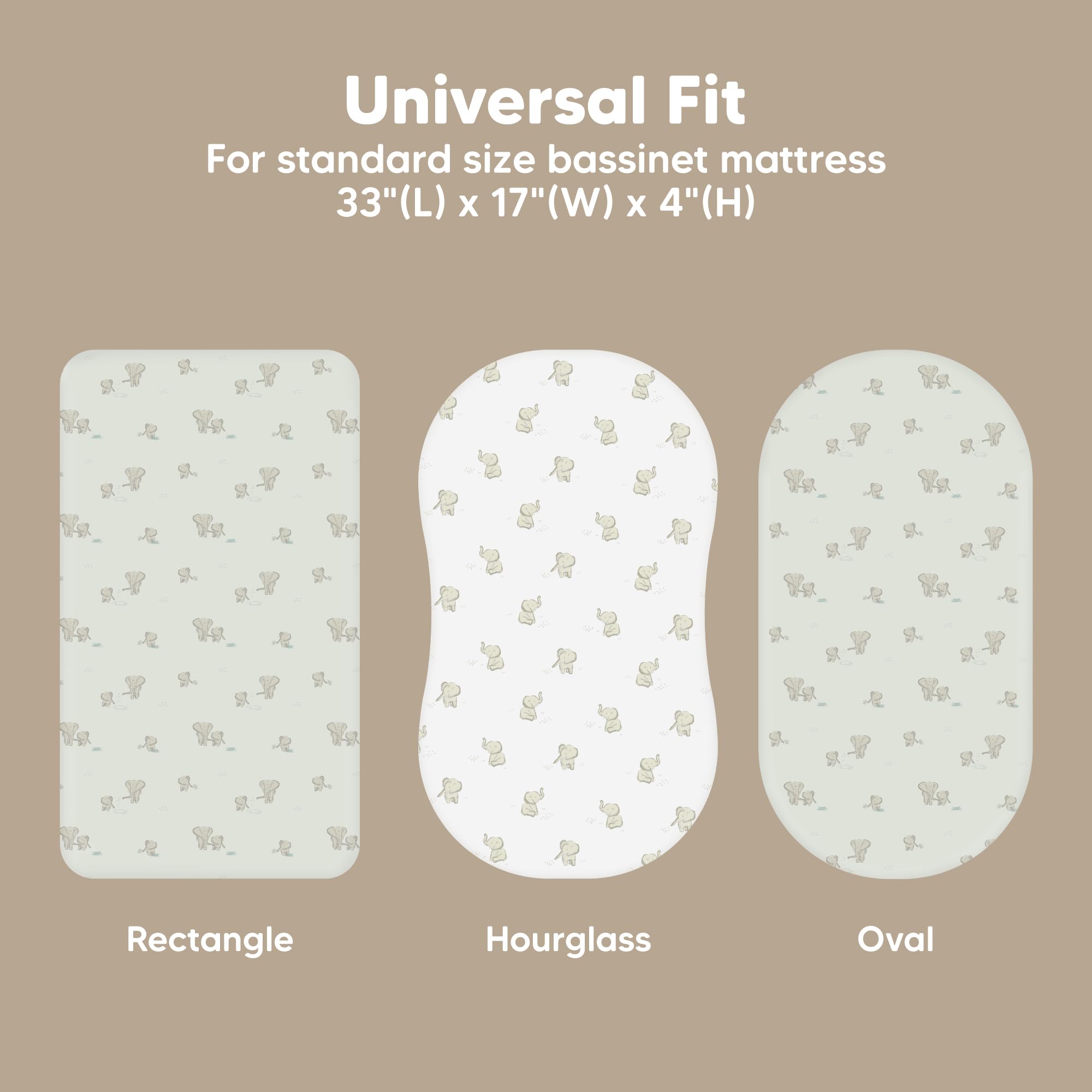 2-Pack Bassinet Fitted Sheets - KeaBabies Isla Bassinet Mattress Sheets, sized at 33" x 17" with a depth of up to 4", provide a universal fit for all bassinet mattress pad types. They can be used as hourglass, oval, rectangle bassinet sheets.
