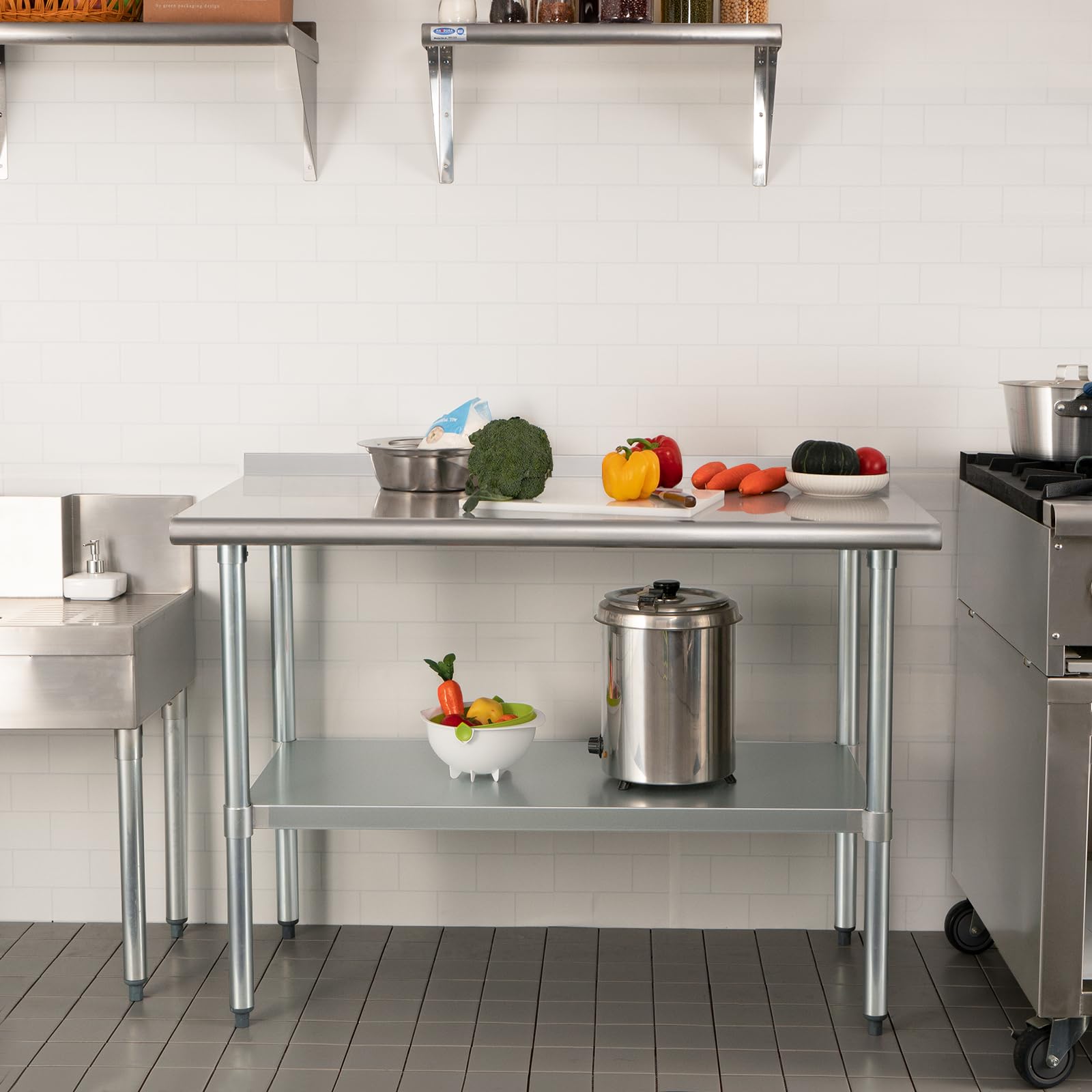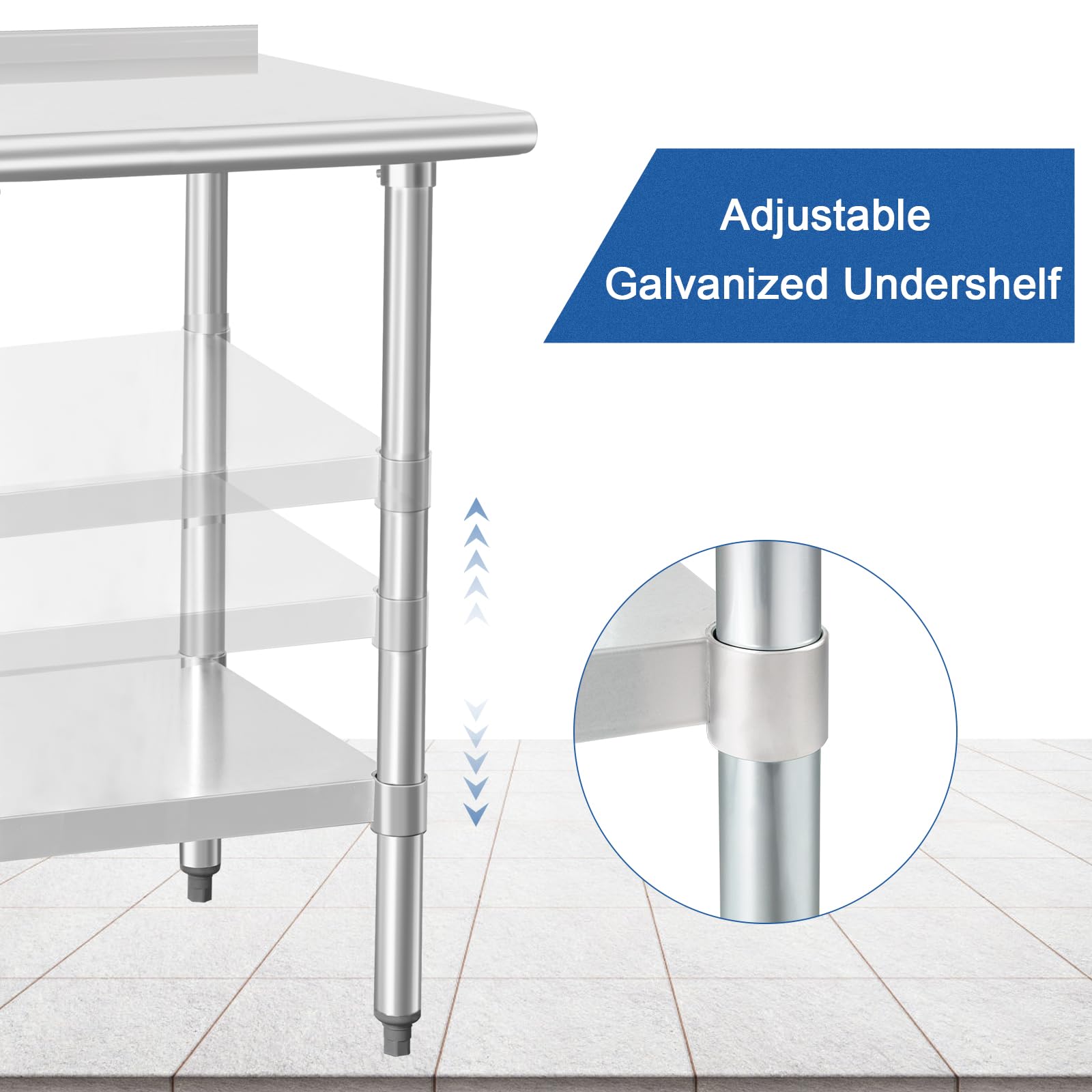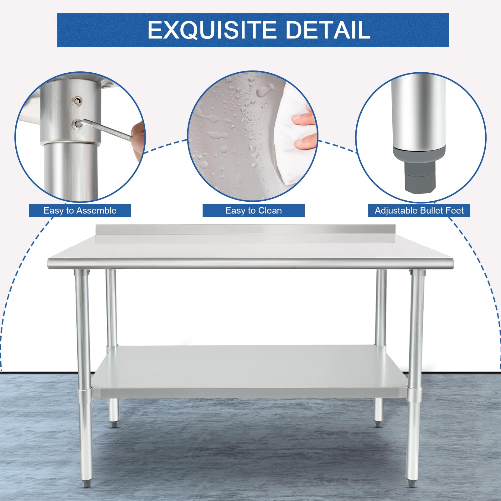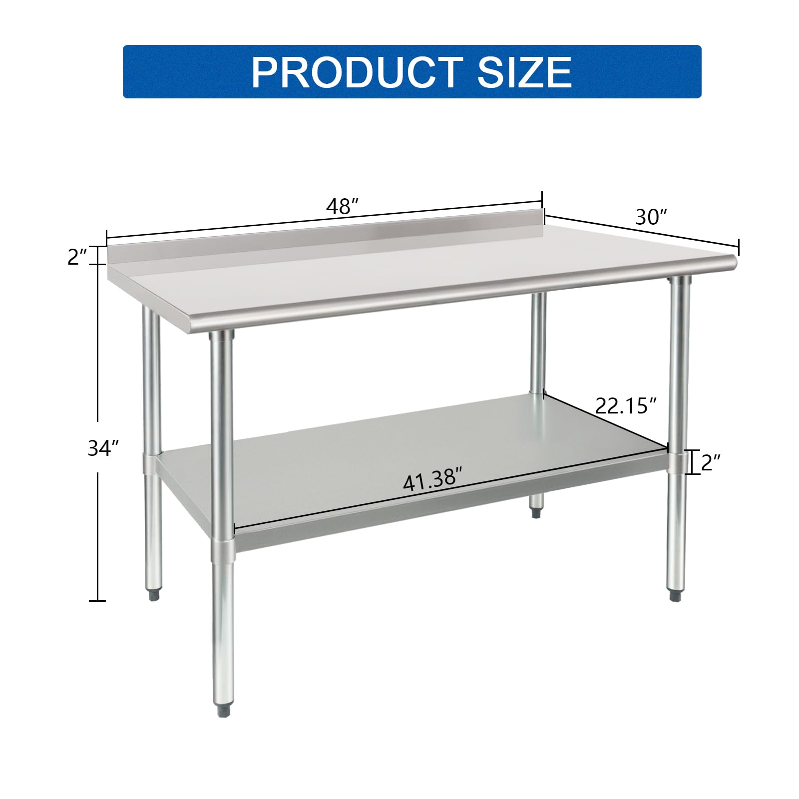 【HIGH QUALITY MATERIAL】- Our safety NSF-certified commercial stainless steel table top shelf is made of durable 18-gauge 430 stainless steel, which is excellent resistant to corrosion and rust. The matel table can withstand the demands of a busy kitchen or industrial setting.