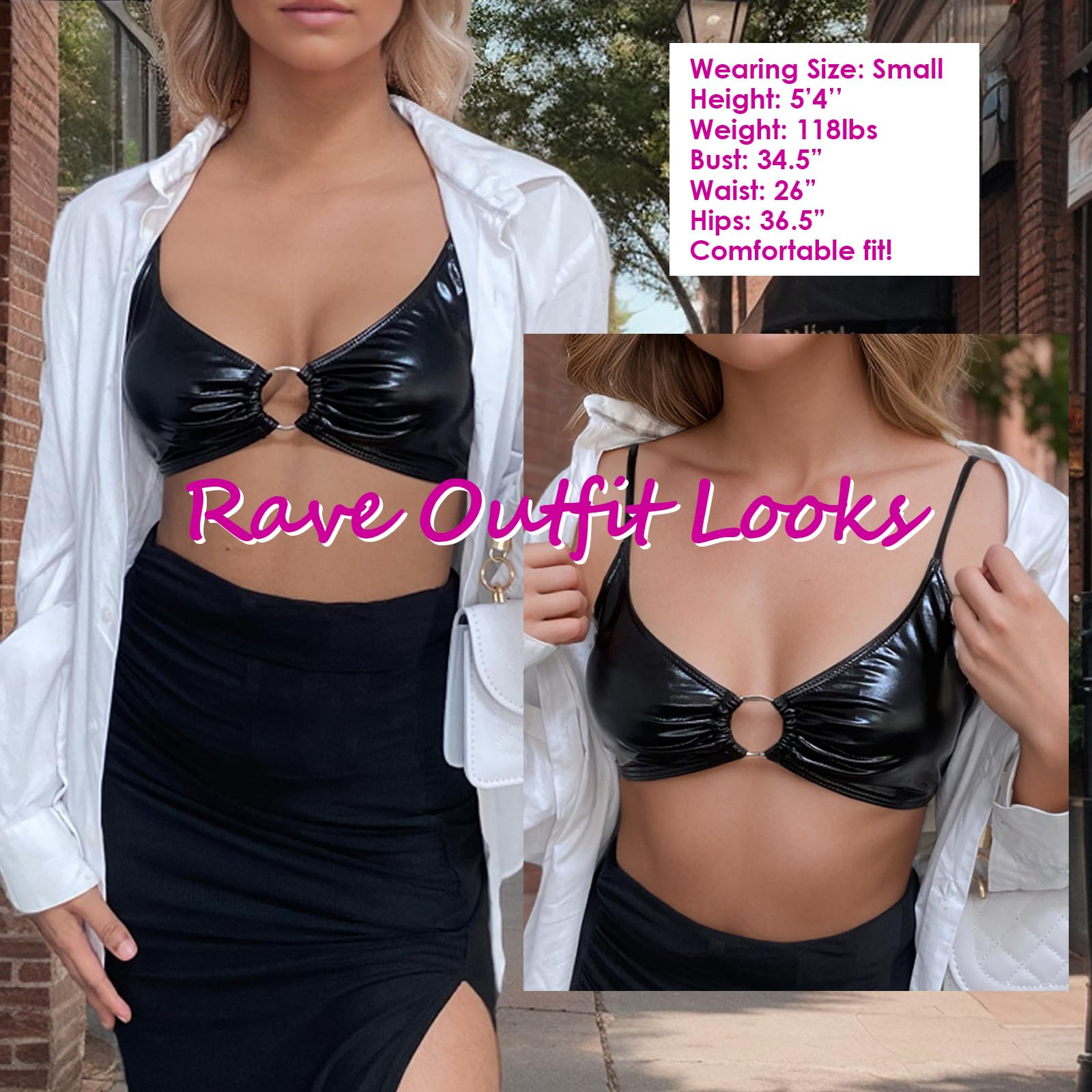 Occasions: Shiny metallic top is an ideal pick for rave outfits, themed parties, swimsuit parties, music festivals, night out, Halloween costume, and clubbing.