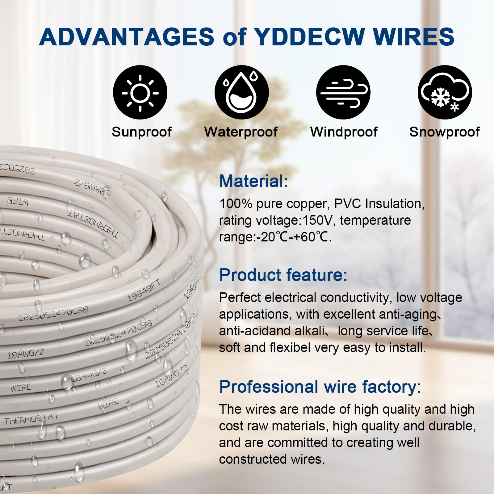 [WATERPROOF]: The jacket material of Thermostat wire cable is made of high-quality PVC, which is waterproof and durable, can be used in harsh outdoor environments, flexible and durable, with a smooth surface and easy to use.