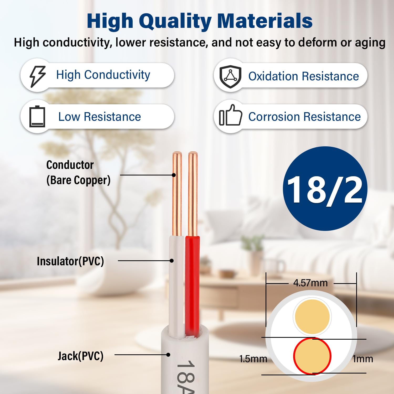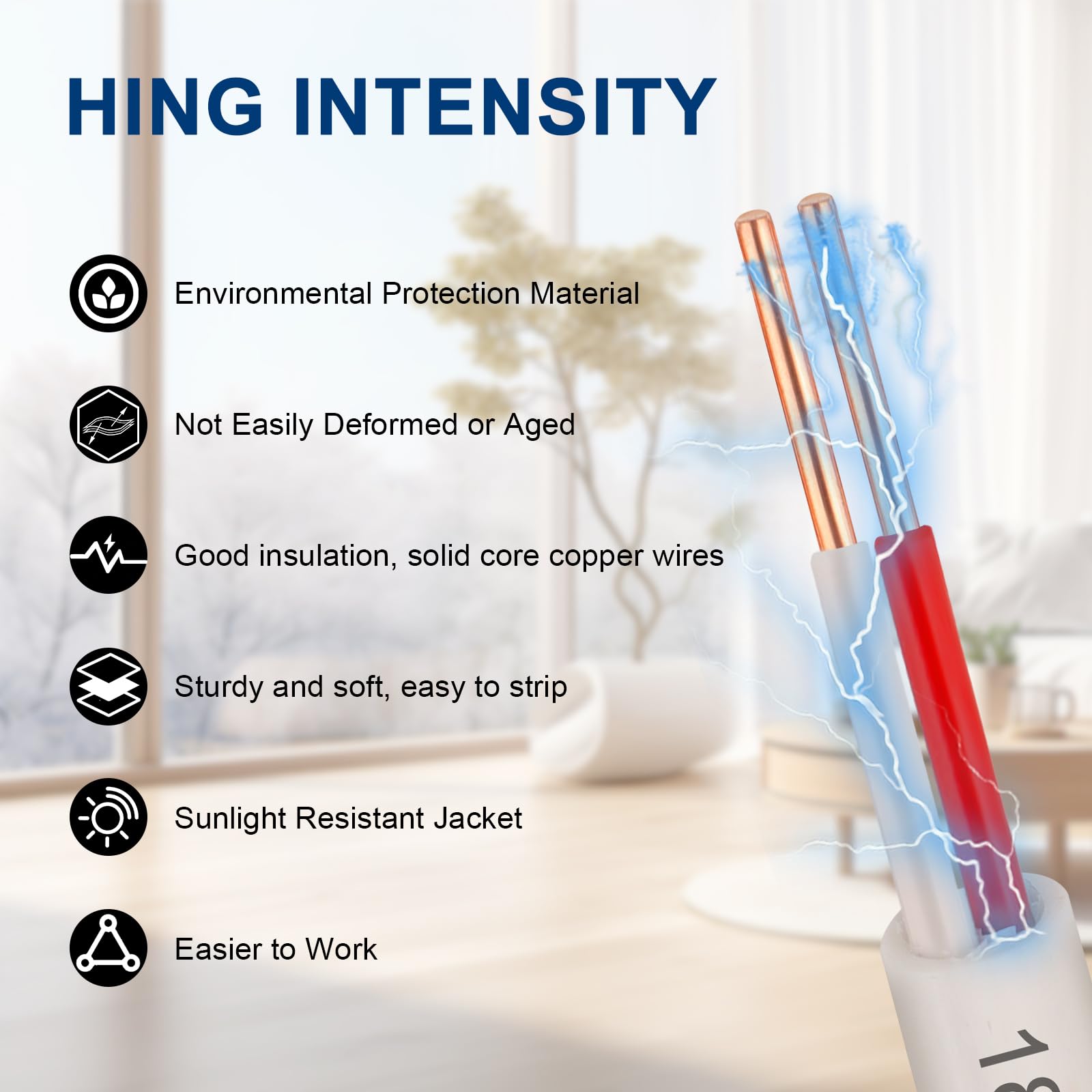 [About Our Thermostat Cable] - 18 Gauge 2 Conductor , CL2, ETL Complied, temperature Rating: -20°C~ +60°C, voltage Rating: 150.