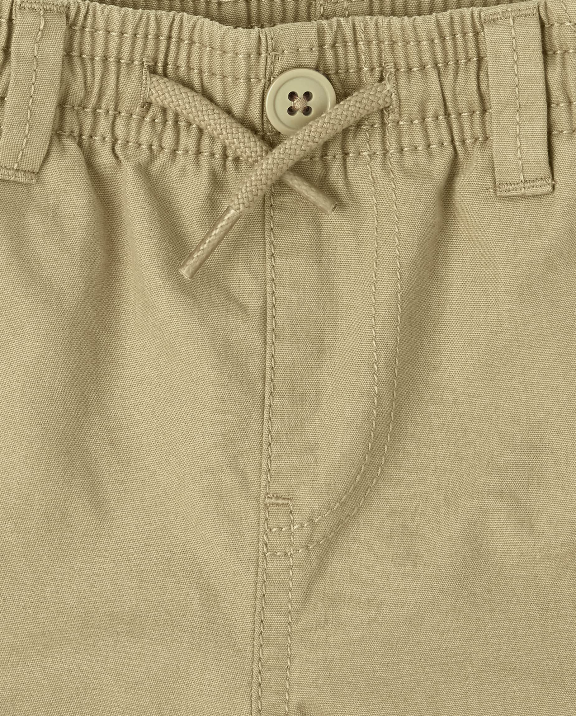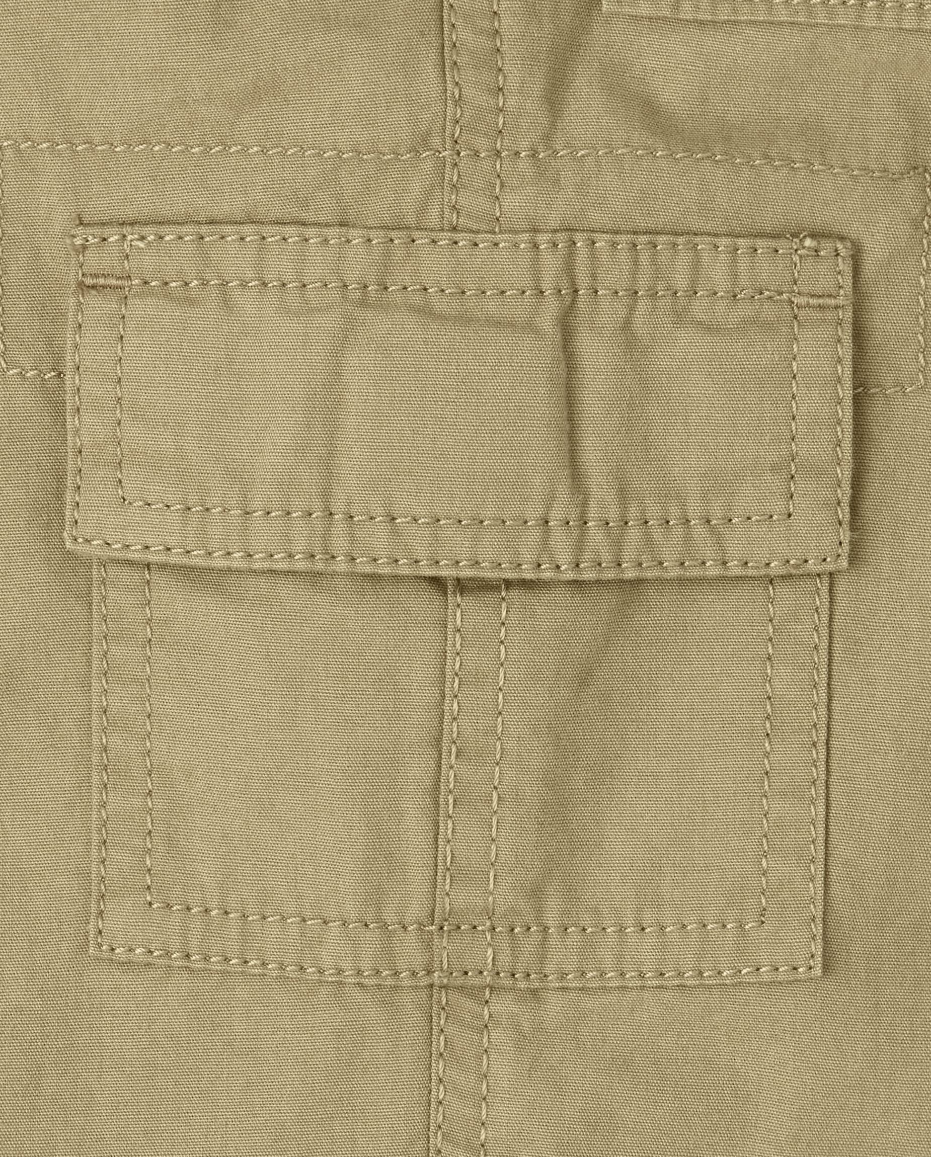 A straight silhouette with a little extra room styled with an elastic pull-on waist with drawstring; plus side slant, cargo flap and back patch pockets