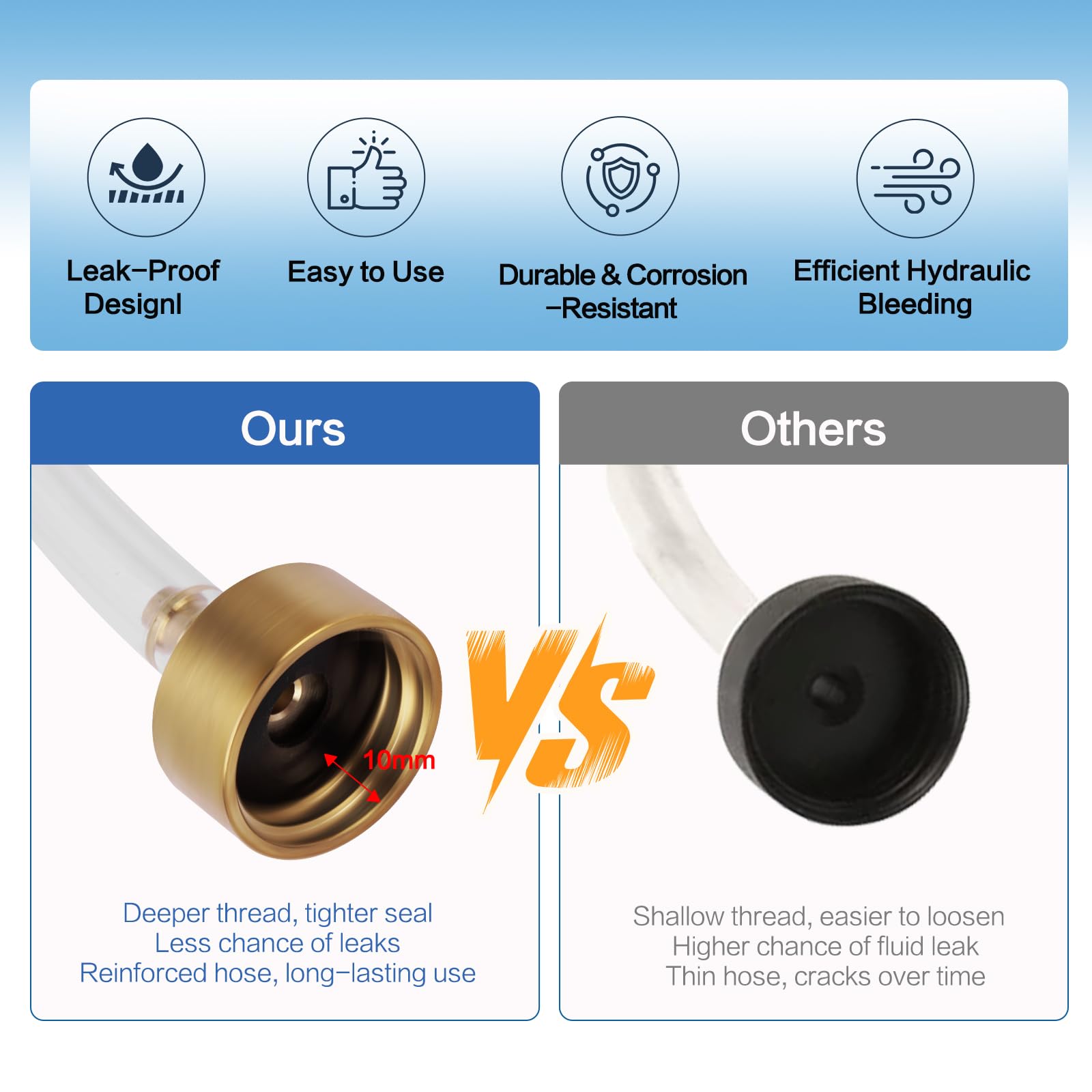 Leak-Proof Design:The seastar hydraulic steering bleed kit upgraded bottle cap thread with an integrated sealing washer minimizes the risk of fluid leakage during marine hydraulic steering maintenance.
