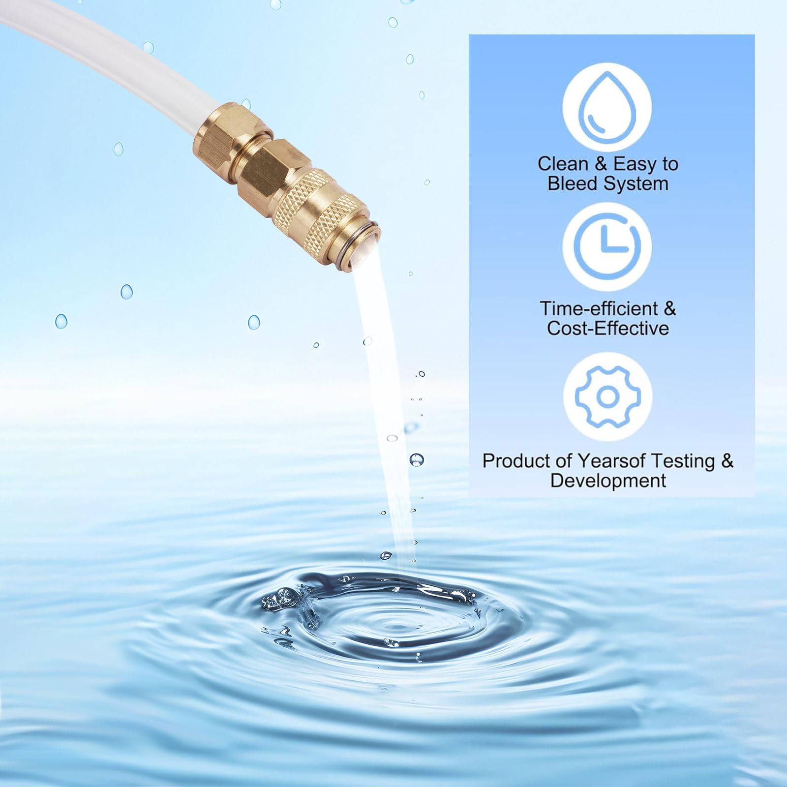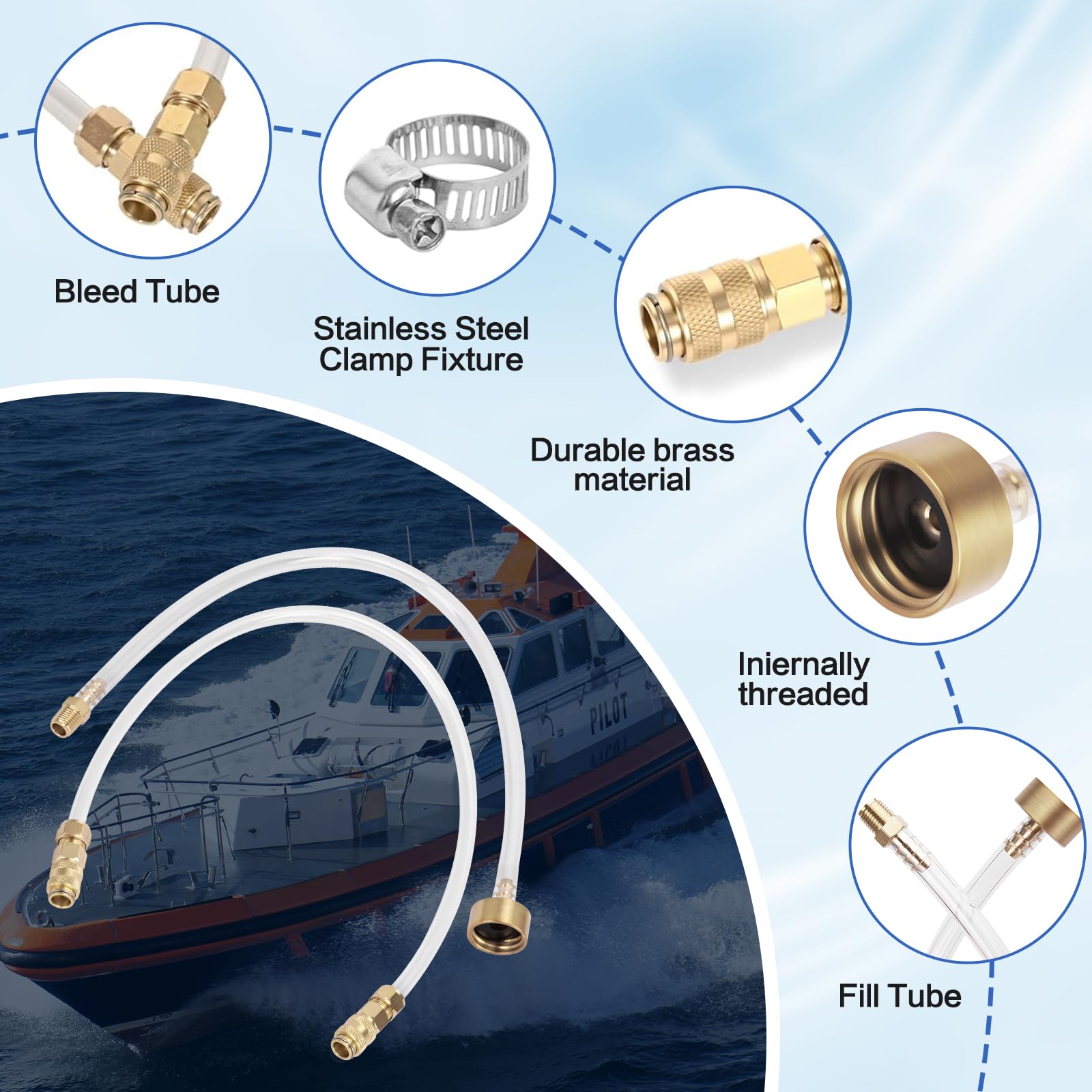 Durable & Corrosion Resistant:The marine hydraulic steering fluid bleeding kit constructed from high-quality brass materials to resist seawater, UV exposure, and extreme marine conditions for long-term reliability.