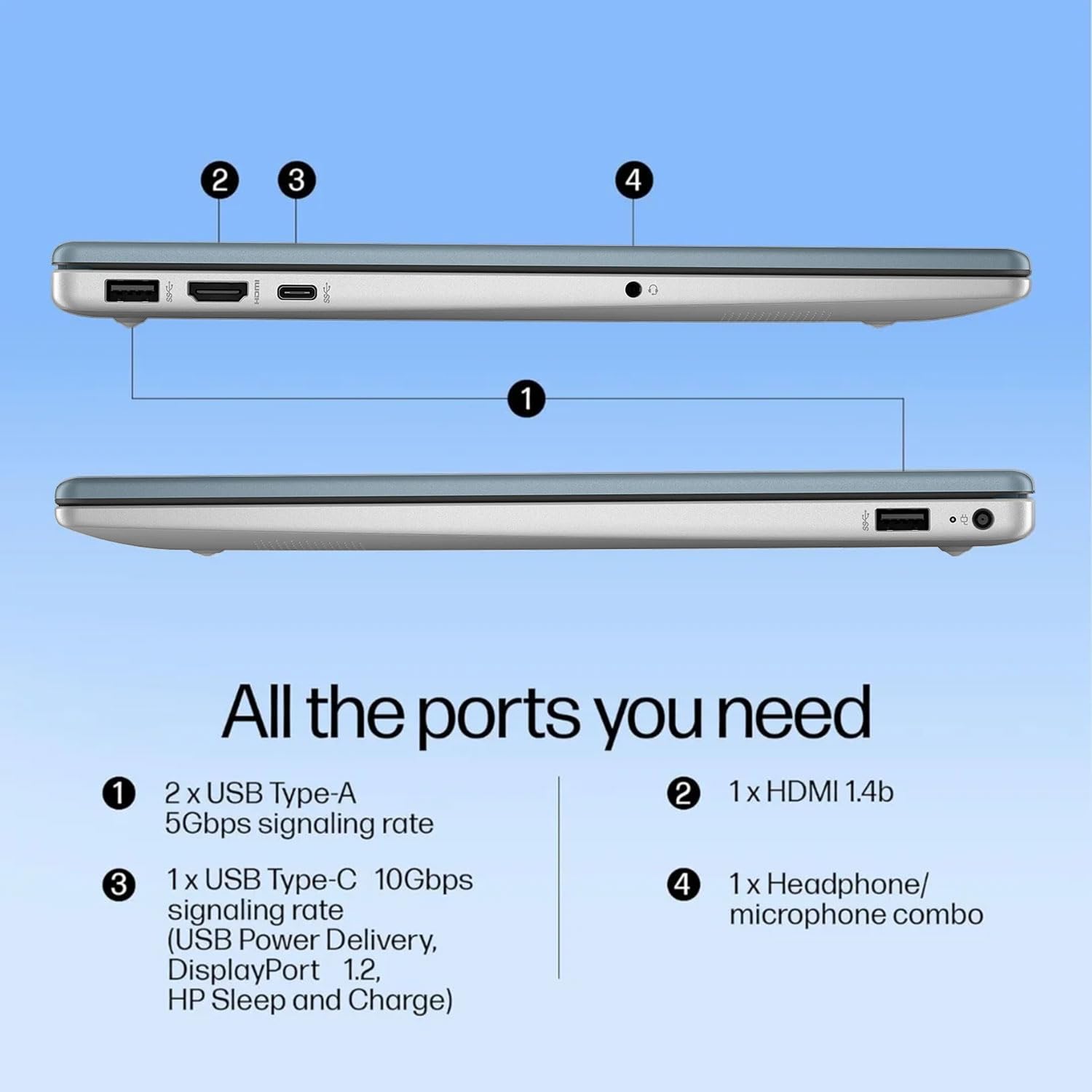 Key Features and Benefits: CPU: Intel Core i3-N305 Processor (8 Cores, 8 Threads, 6MB L3 Cache, Base Frequency at 0.8 GHz, Up to 3.8 GHz at Max Turbo Frequency) Memory: Up to 32GB RAM Hard Drive: Up to 1TB PCIe Solid State Drive Operating System: Windows 11 Home Graphics: Intel UHD Graphics Display: 15.6 in diagonal, FHD (1920 x 1080), touchscreen, IPS, micro-edge, BrightView, 250 nits, 45% NTSC Ports: 2x USB 3.2 Gen 1 Type-A 1x USB 3.2 Gen 1 Type-C 1x HDMI 1.4b 1x Headphone/microphone combo 1x AC Smart pin adapter plug Optical Drive: None Keyboard: Full-size with numeric keypad Webcam: HP True Vision 720p HD Camera with temporal noise reduction and integrated dual array-digital microphones Battery: With up to 9 hours and 45 minutes video playback battery life, you can take on the day without worrying about recharging Wireless Connectivity: Wi-Fi 6 Bluetooth 5.3 Dimensions: 9.29 x 14.17 x 0.73 in Weight: 3.53 lbs Color: Blue Access the AI-powered Microsoft Copilot assistant with the Copilot key and get intelligent assistance and relevant answers to your questions, fast