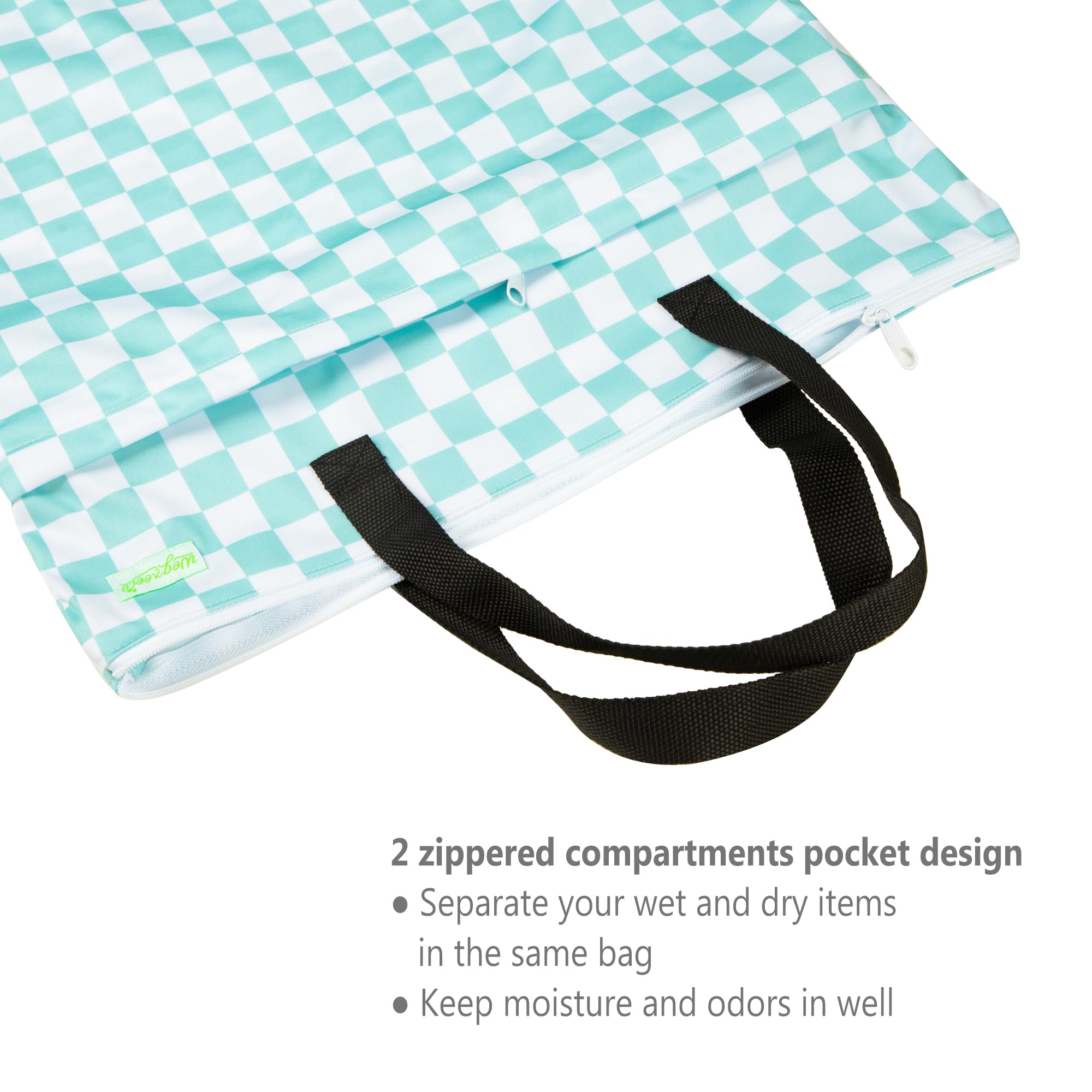 HANDLES & WET POCKET KEEPS MESSES IN - The nylon handles allows for easy hanging on a hook or doorknob on daily carry; The two zippered compartments pocket design keep moisture in well; The clean items in the front zippered pocket and the dirty or wet items in the zippered "wet" section keeping moisture in