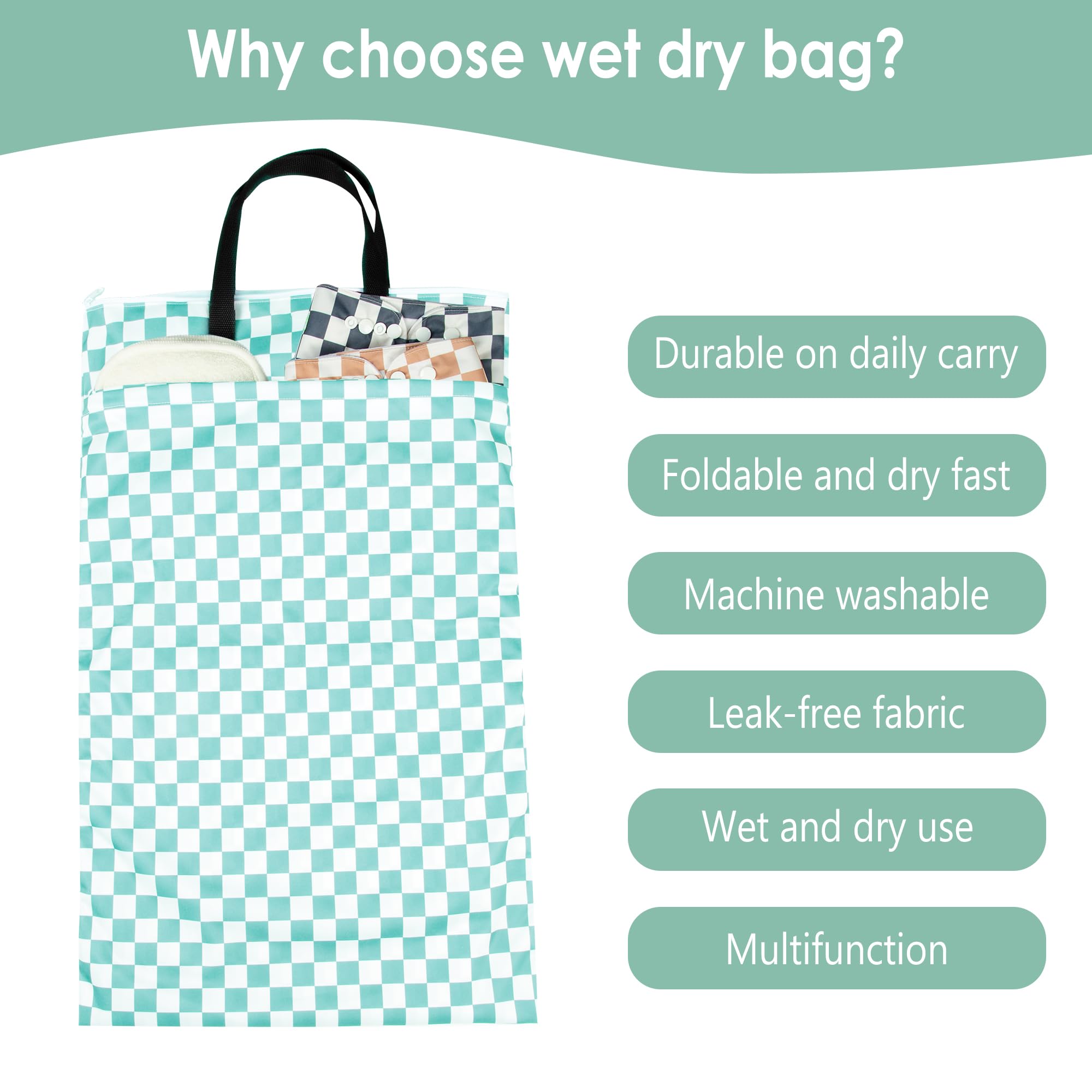 MACHINE WASHABLE - Tumble dry low, can last up to hundreds washes; Wet items must be fully wrung out before placed in the bag, excess water may cause leaks through the seams; We recommend purchasing two wet bags, so you can rotate them in the wash
