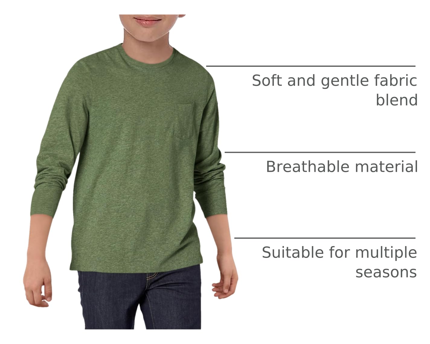 Design: Boys fall t-shirt, long sleeve shirts, basic tees with chest pocket, classic round neck and regular length, it's a good choice for your kids.The loose fit provides a comfortable fit for ease of wear and movement. Available in a range of solid colors, they offer a clean, versatile look that easily matches any bottom, making them a wardrobe staple for boys
