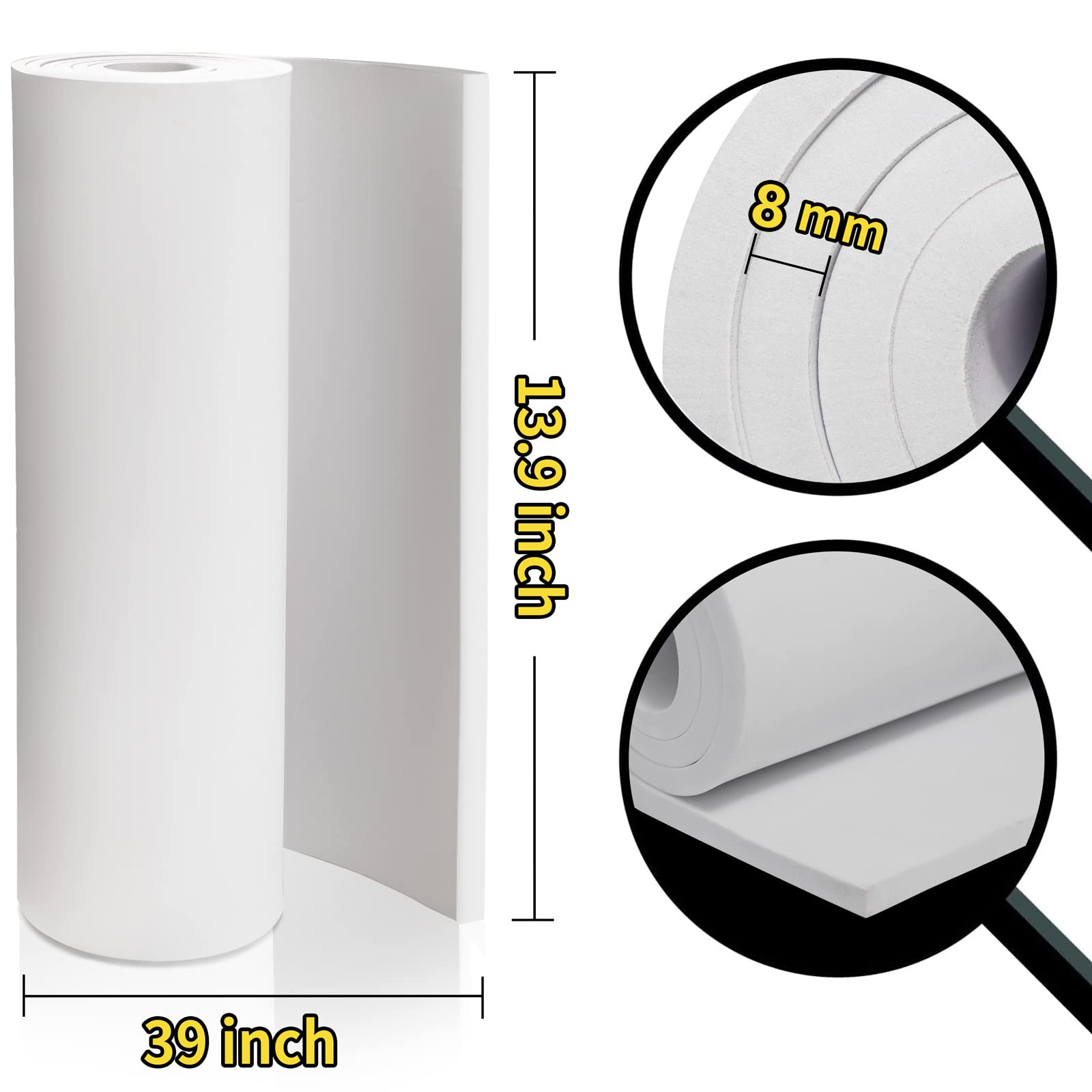 2-Pack 8mm Thick White Eva Foam Cosplay Sheets roll, 13.9" x 39" Premium eva Craft Foam for Cosplay Costume by MEARCOOH