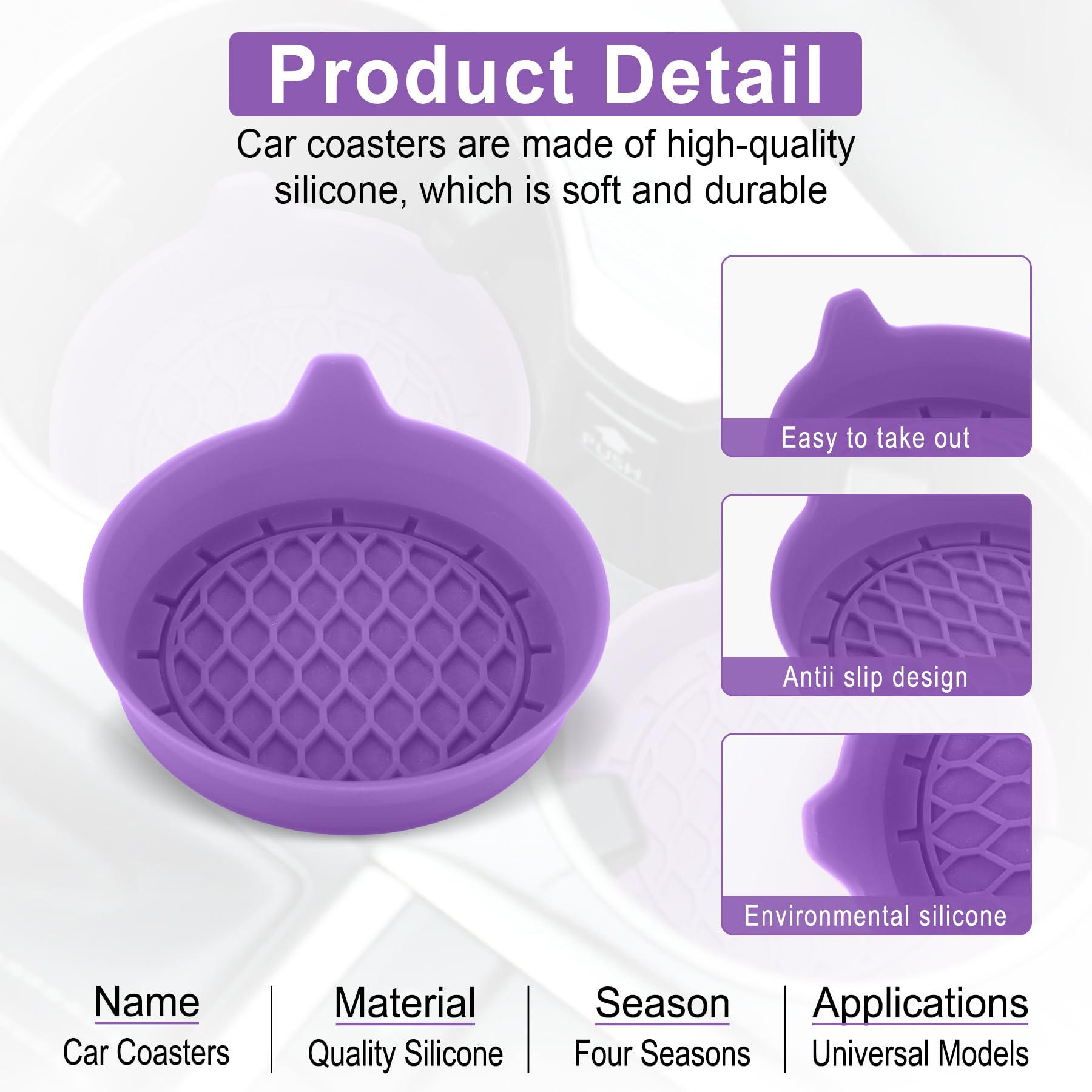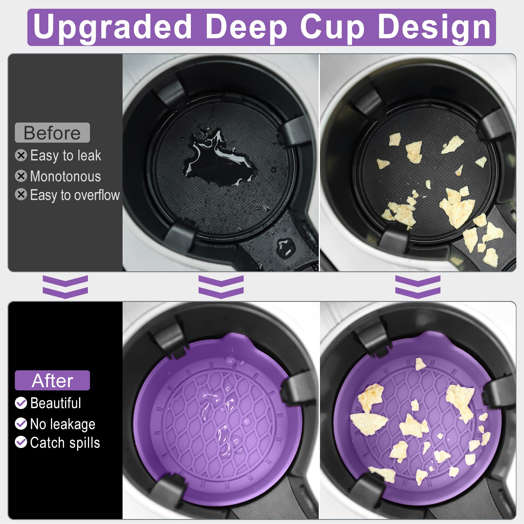 Protection Function: Our car cup holder coaster has a carry handle design and a stand-up ring edge on its edge to effectively prevent food crumbs, drinks and water from leaking out and preventing the car cup holder from getting dirty.Meanwhile,Thickened design effectively prevents the cup holder from being scratched by the cup when driving on bumpy roads and eliminates the annoying thumping sound, making your journey more enjoyable.