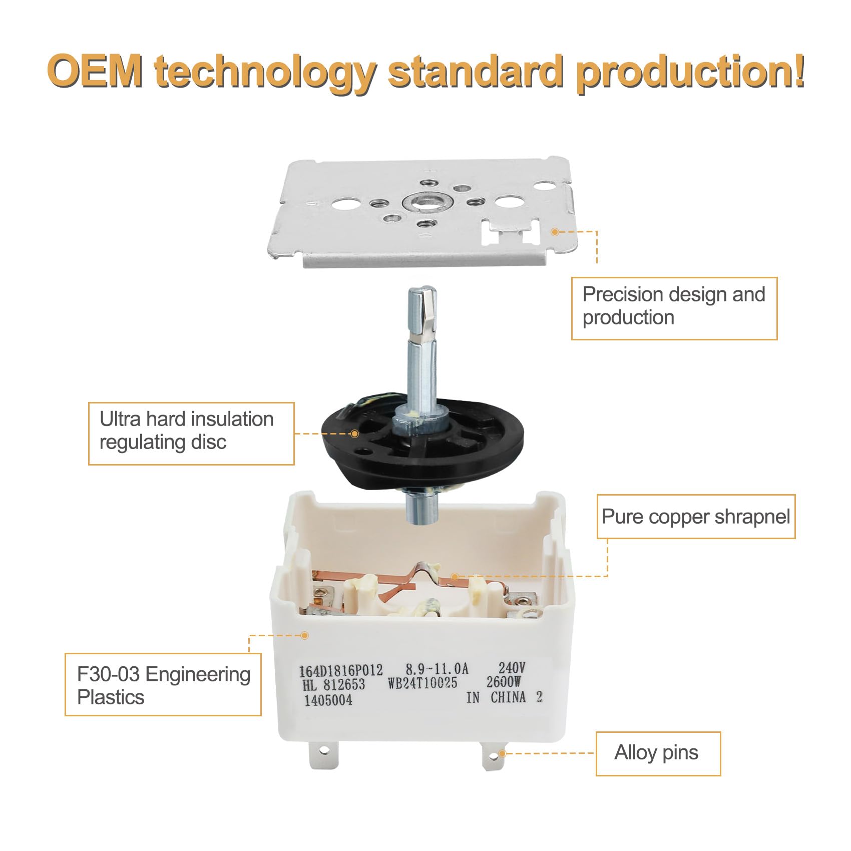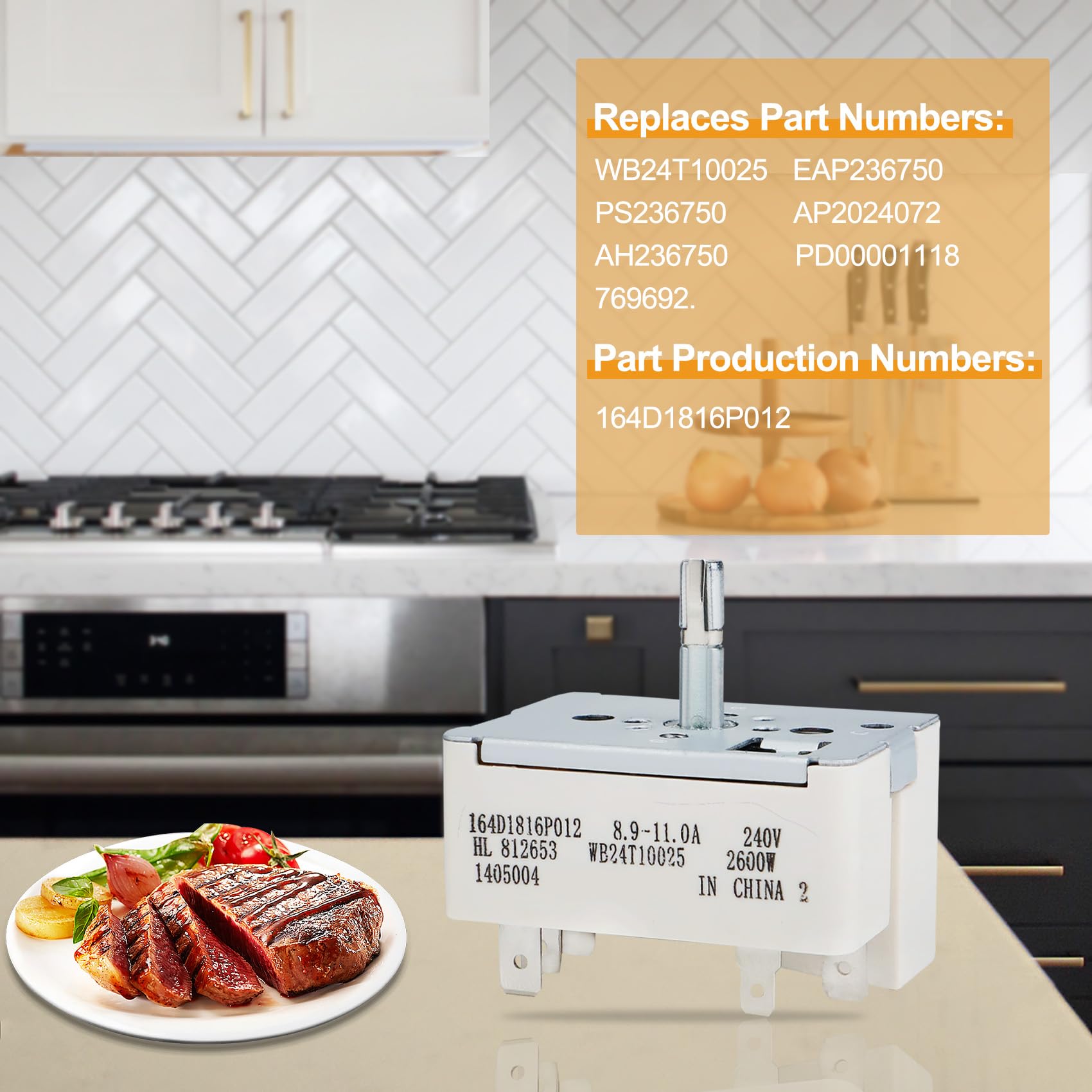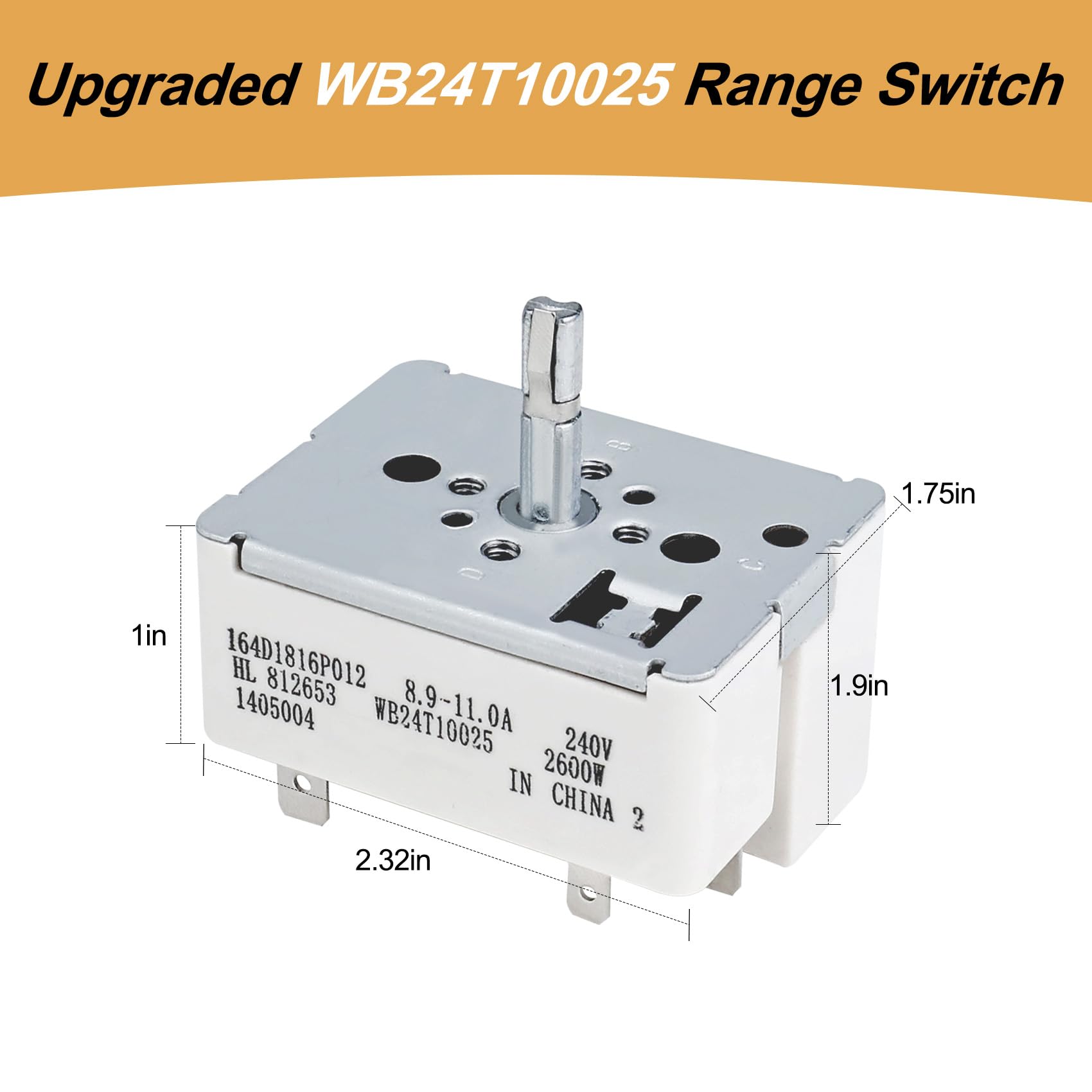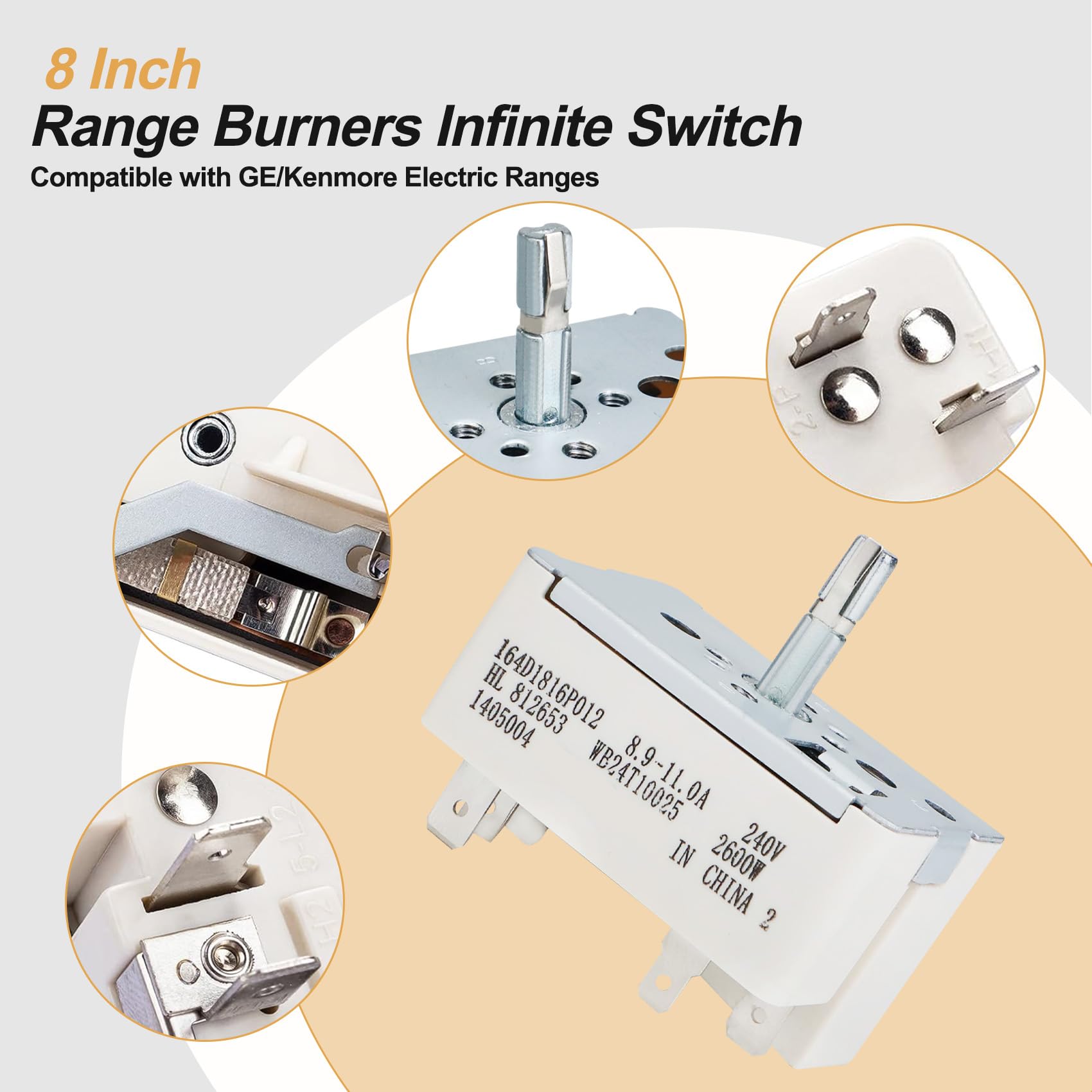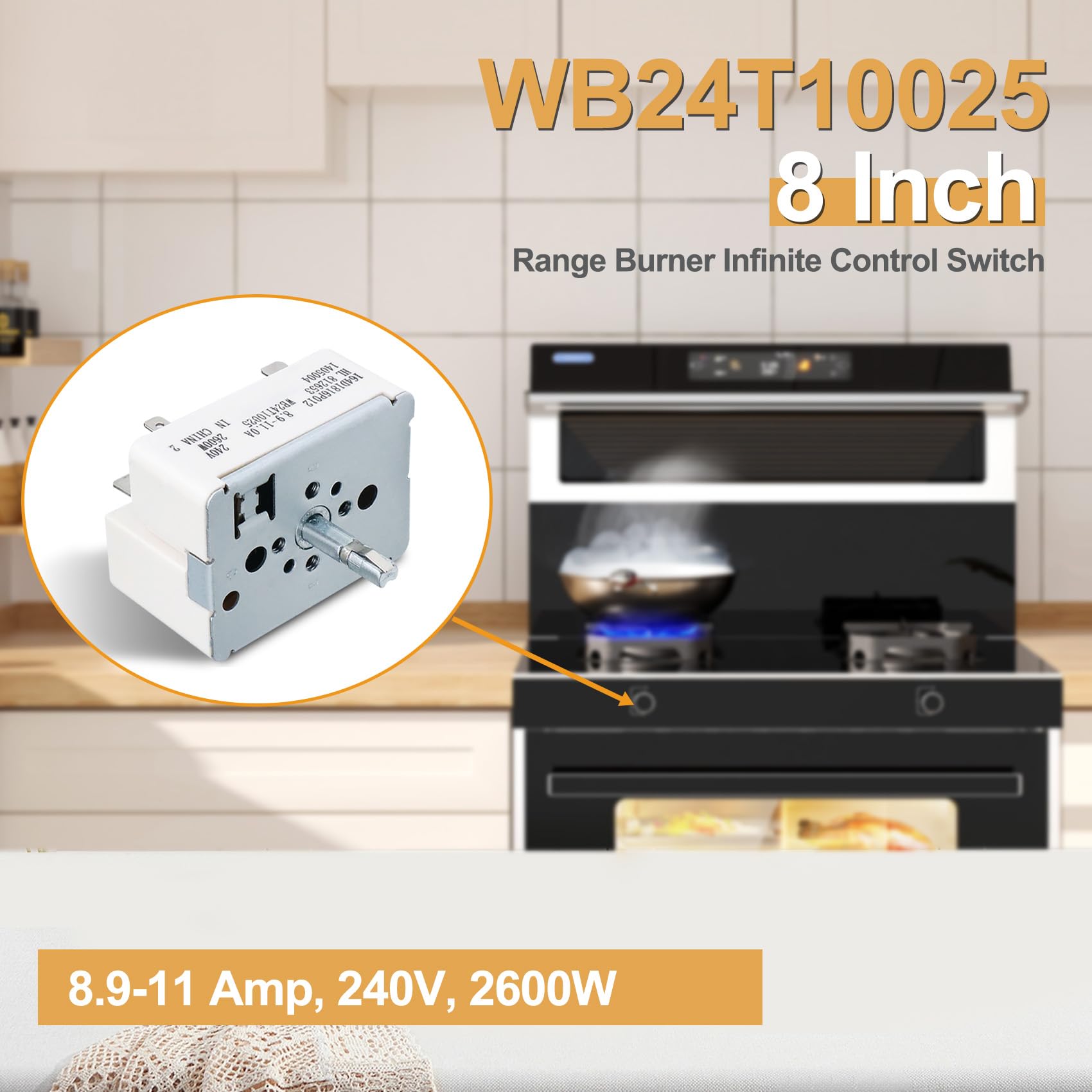 【Adaptation】GE Appliances WB24T10025 Range Surface Burner Control Switch is for 8.9 -11.0 A, 240 V, 2600W larger 8 Inch burner surface element.