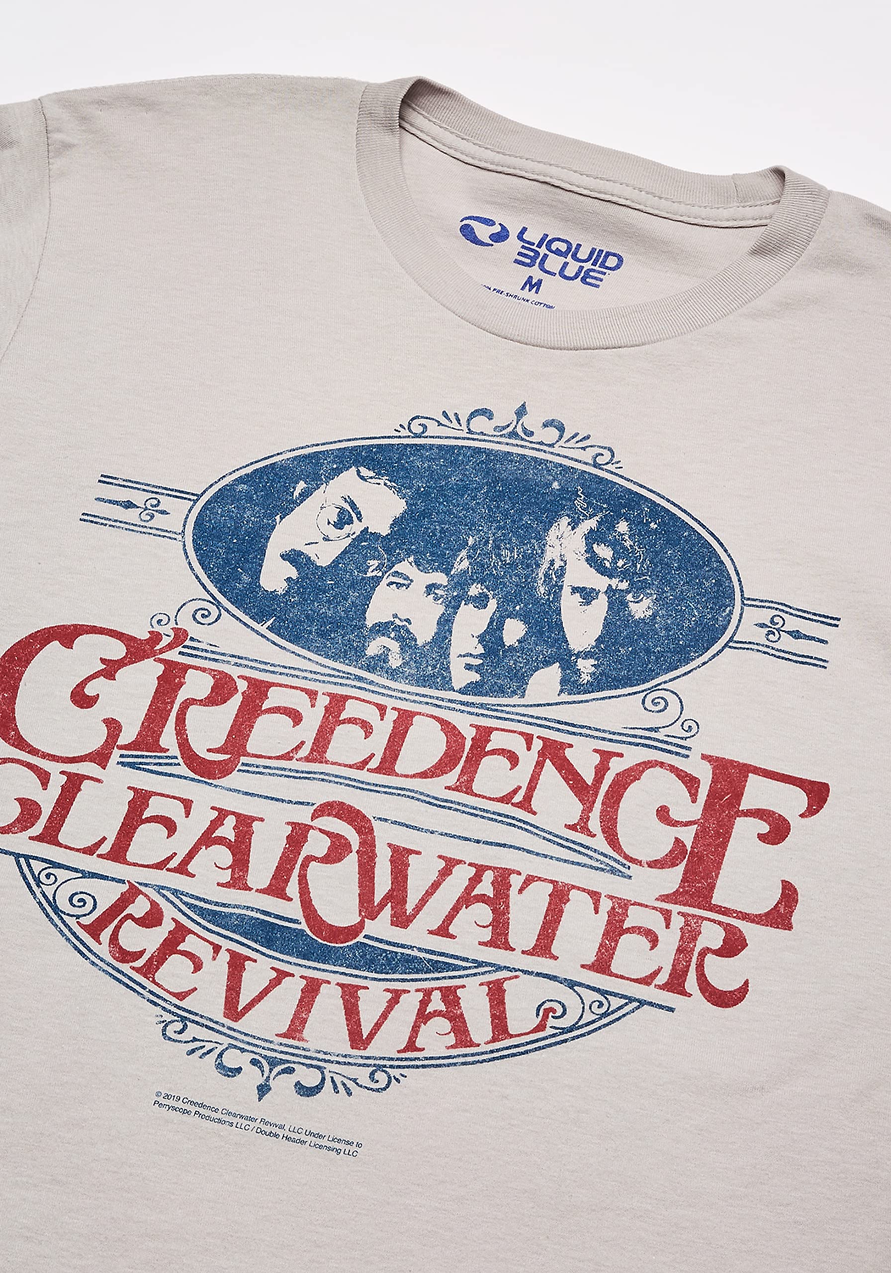 Description Officially licensed Creedence Clearwater Revival graphic short sleeve tee shirt. This classic design will show your true American pride when you show up for the 4th of July. Made with pride by Liquid Blue.