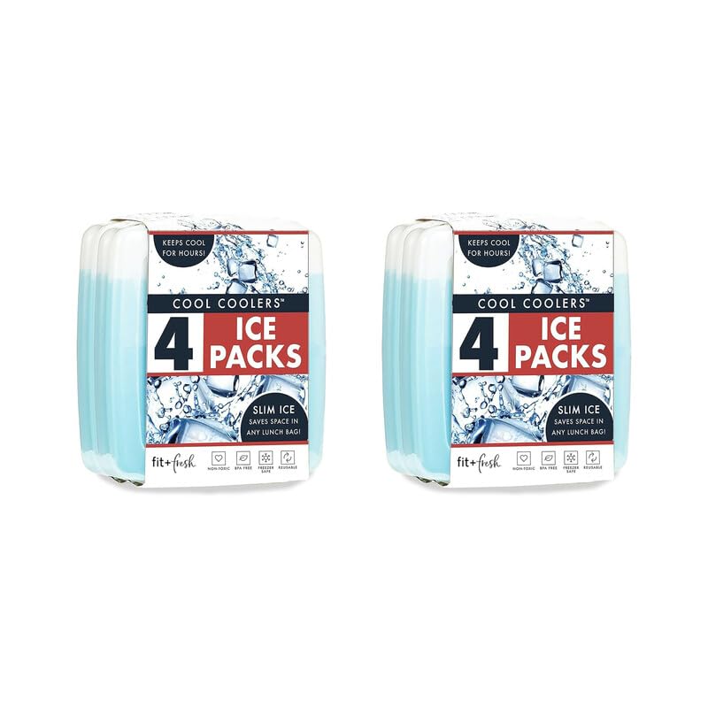Upgrade your lunch routine with Cool Coolers Slim Ice Packs by Fit & Fresh, designed to deliver powerful cooling without the bulk. Say goodbye to freezer packs that take up all the space! These thin ice packs for lunch boxes are ideal for packing with fresh meals, snacks, and drinks while keeping bags organized and lightweight. Whether you’re prepping school lunches, packing a work lunch, or heading out for a day trip, these reusable freezer packs help maintain cold temperatures longer so food stays fresh and safe to enjoy. Each slim ice pack freezes quickly and fits easily into lunch boxes, lunch totes, insulated cooler bags, soft coolers, and insulated grocery bags, making them a versatile cooling solution for everyday use. Their space-saving shape allows you to stack multiple lunch ice packs reusable around containers and the walls of your insulated bag for even cooling without crushing food. Unlike bulky ice blocks, these cooler packs reusable slide neatly beside bottles, meal prep containers, and snacks. Made with a durable, BPA-free shell, these food-safe cold packs are leakproof, easy to clean, and built for repeated use. Perfect for kids’ school lunches, adult work meals, picnics, travel, and breastmilk transport, Cool Coolers ice packs are a reliable, long-lasting solution for keeping food cold wherever the day takes you.