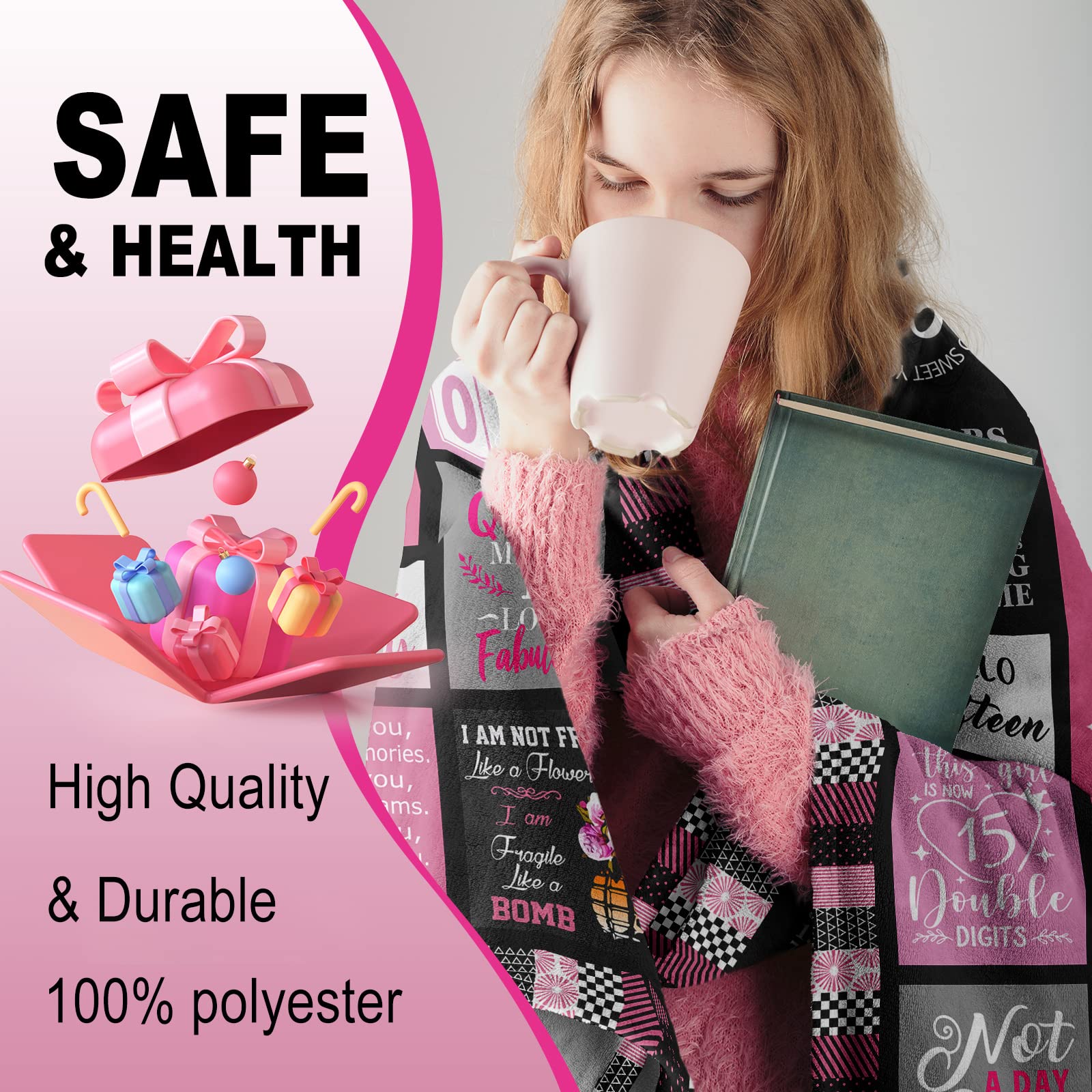 【Great gift idea】: When you get this throw blanket for your daughter, sister, niece, friend, it will be a perfect gift for 15th birthday, party, Christmas, New Year's Day, Thanksgiving. As a surprise gift for a sweet day, or as a thoughtful gift for living with you, that special someone by your side will let her know that you care about her.