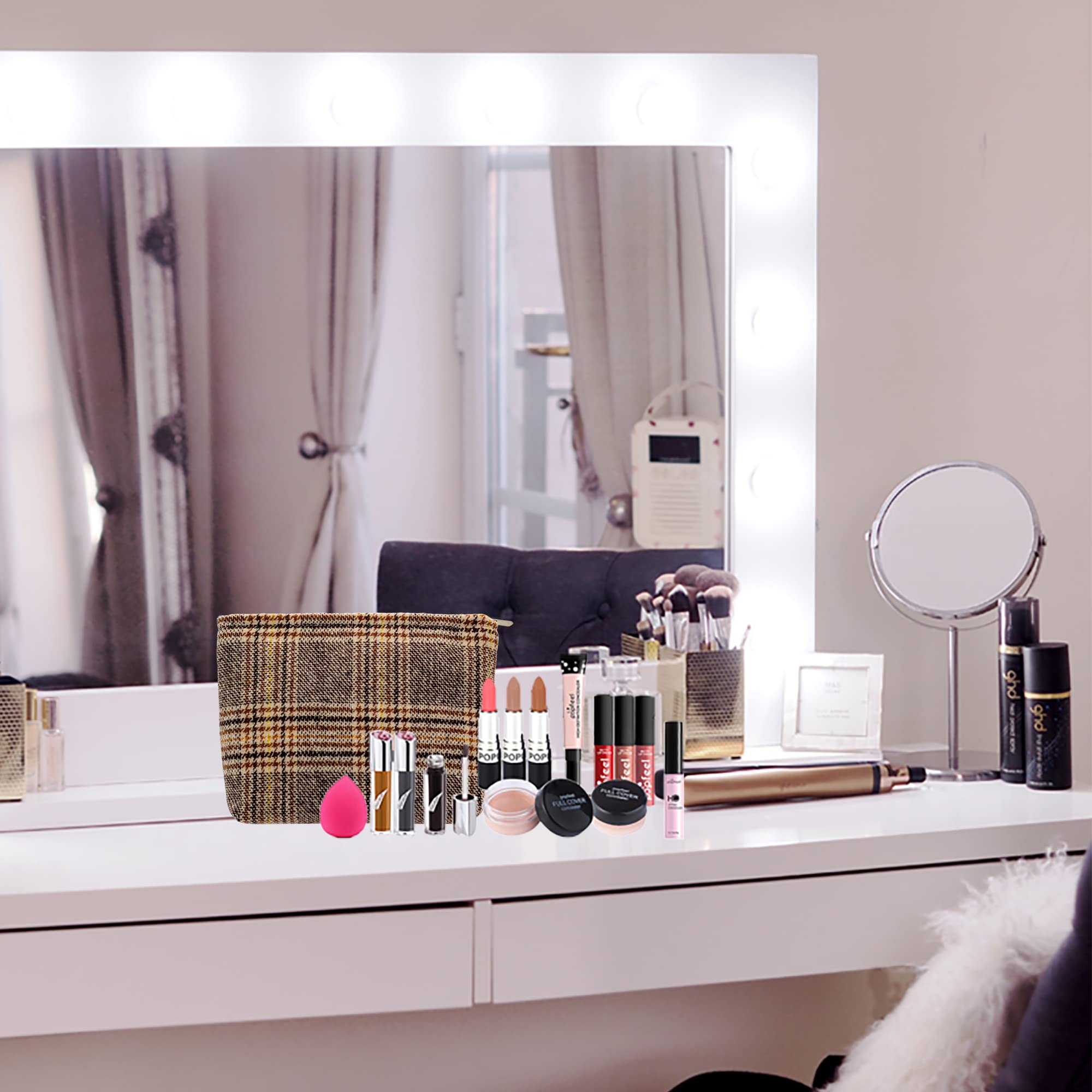 Multi-Purpose:Use this sturdy pouch to easily pack and carry makeup,jewelry,beauty items,brushes,pencils,small electronic accessories,toiletries,essential oils,medcine,tools or other travel essentials.This cosmetic pouch is the perfect balance between funchtion and style.