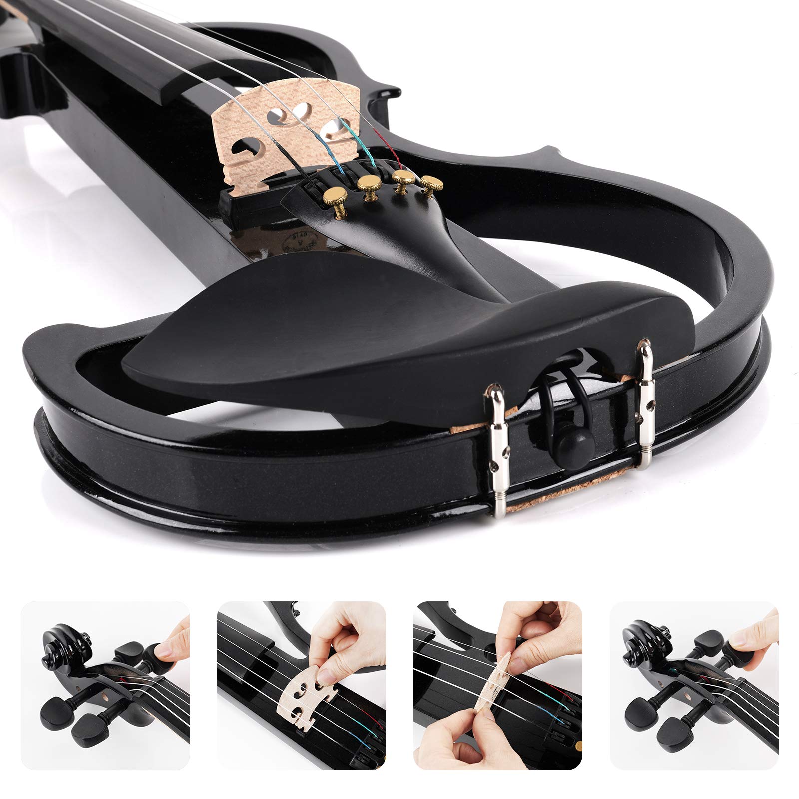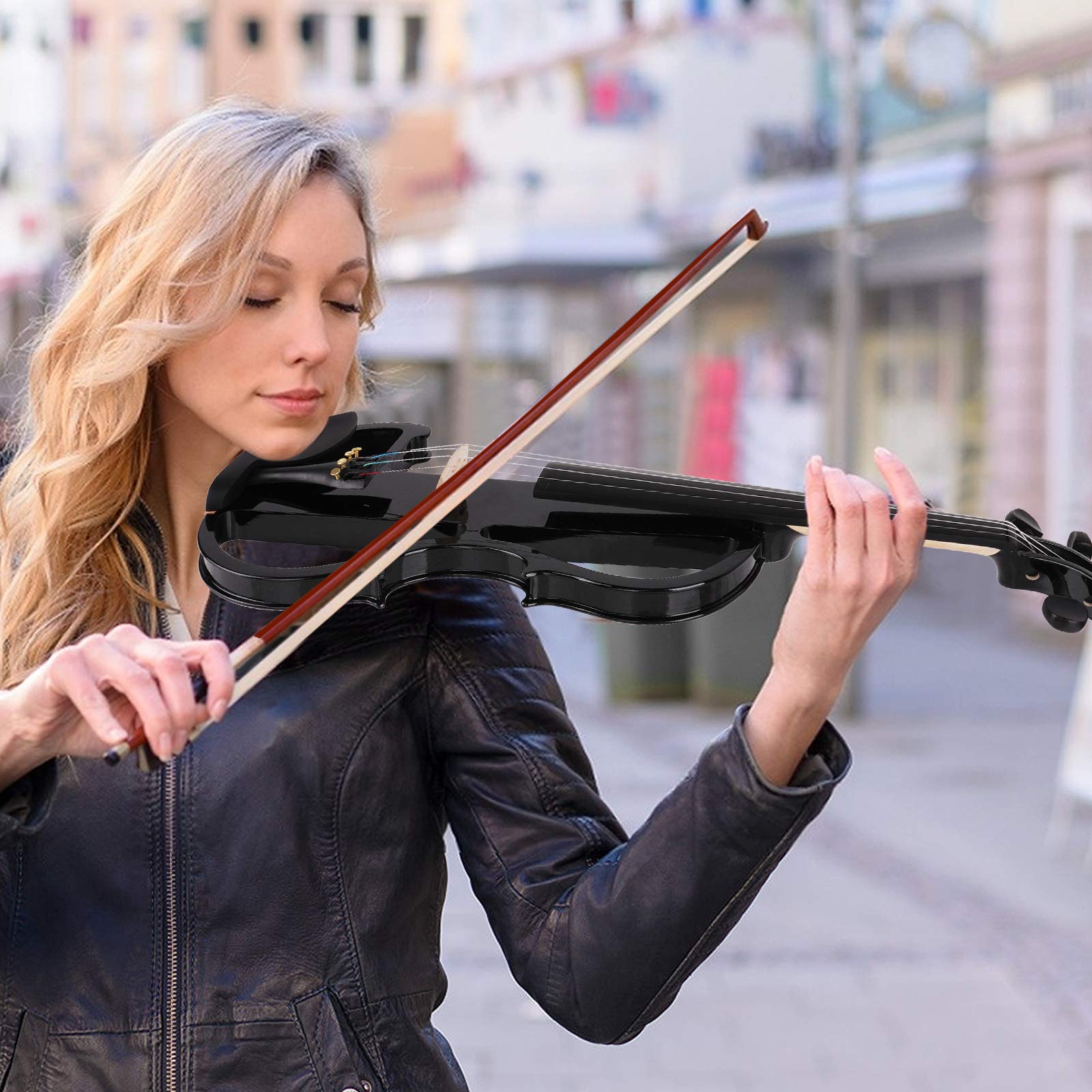 ✔️ [Quality Durable Material] Premium Solid maple wood body in black metallic varnish produces a crisper, more resonant, and brighter sound. Selected ebony fretboard ensures smooth playing while solid maple head, pegs, and chin rest are durable for a long period of practice