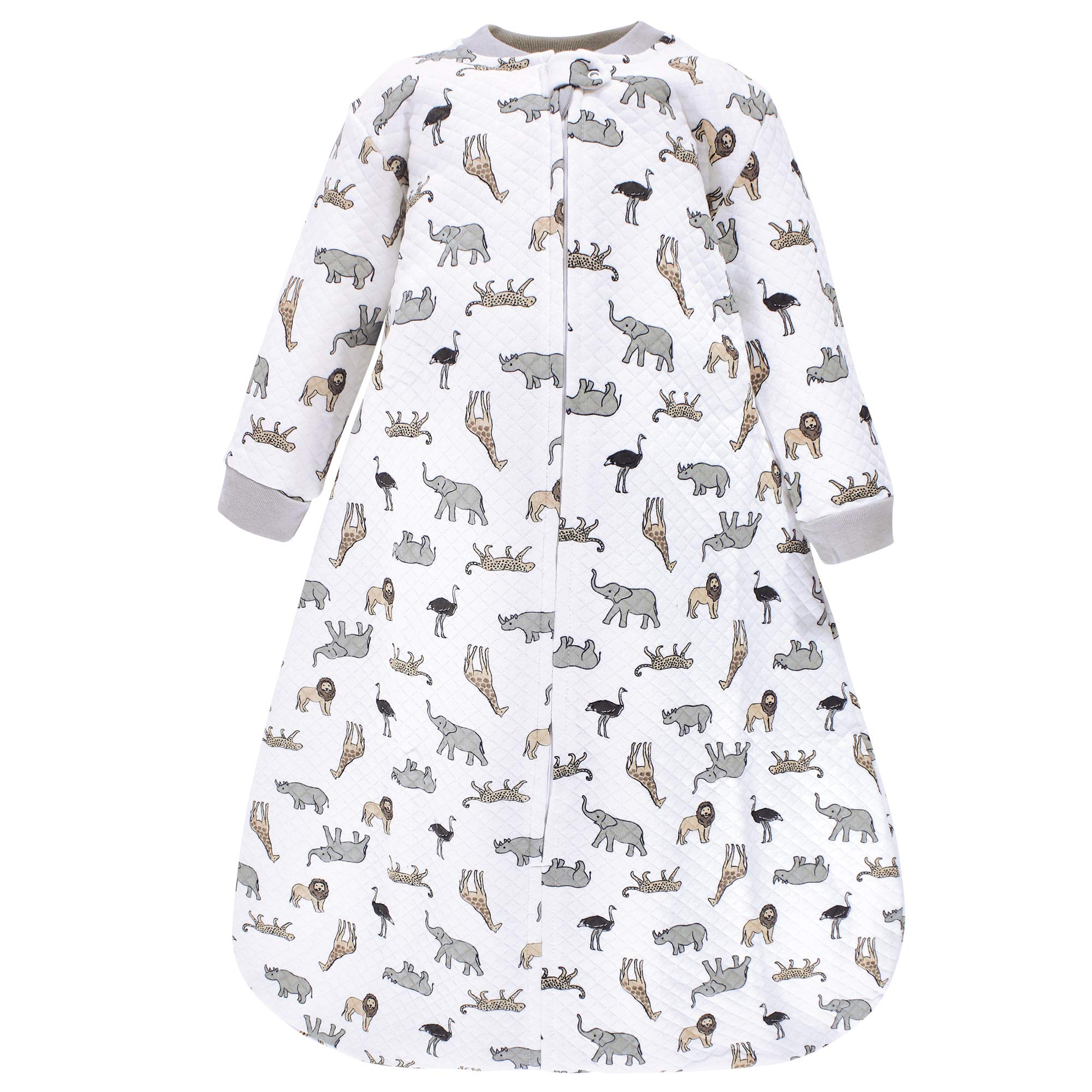 Description Hudson Baby premium quilted cotton sleeping bag and wearable blanket is the perfect safe sleep blanket for your little one to have a warm, cozy, comfortable and safe night of sleep. Our quilted fabric is made of soft, delightful cotton with polyester filling. Our wearable blanket is designed long-sleeve because it is made with a light cotton material, providing the perfect balance of keeping baby warm while still keeping baby safe from overheating. Our zipper closure makes for easy on and off dressing, which is especially convenient for night time diaper changes. Our sleep sack will replace loose blankets in the crib and will keep your little one cozy, warm and secure throughout the night.