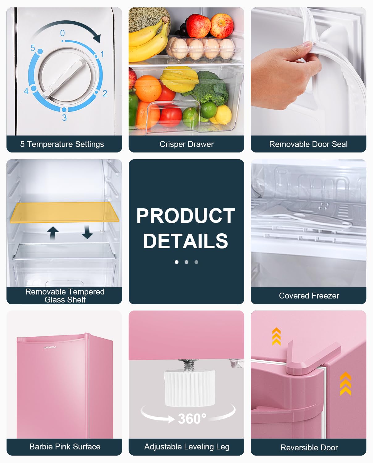 Crisper Drawer & Removable Shelves: Features a crisper drawer to keep your greens and fruits fresh and juicy. The small fridge storage space is adjustable to practical uses with removable shelves. Arrange these shelves how you see fit and you’d be amazed how much the small fridge can stores
