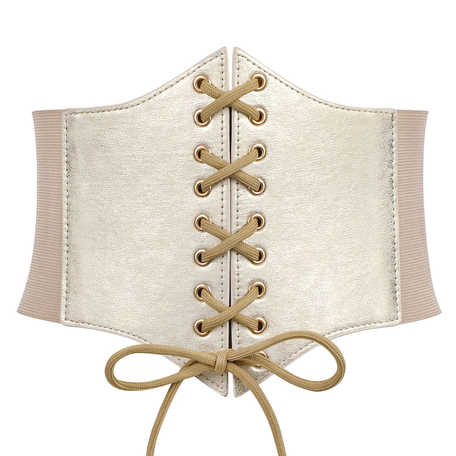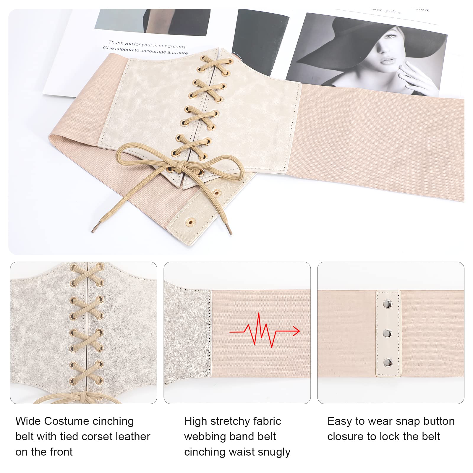 ➜ Black Corset Belt for Waist - Wide Costume cinching belt with tied corset leather on the front, elastic webbing band on the back, snap button closure to lock the belt,