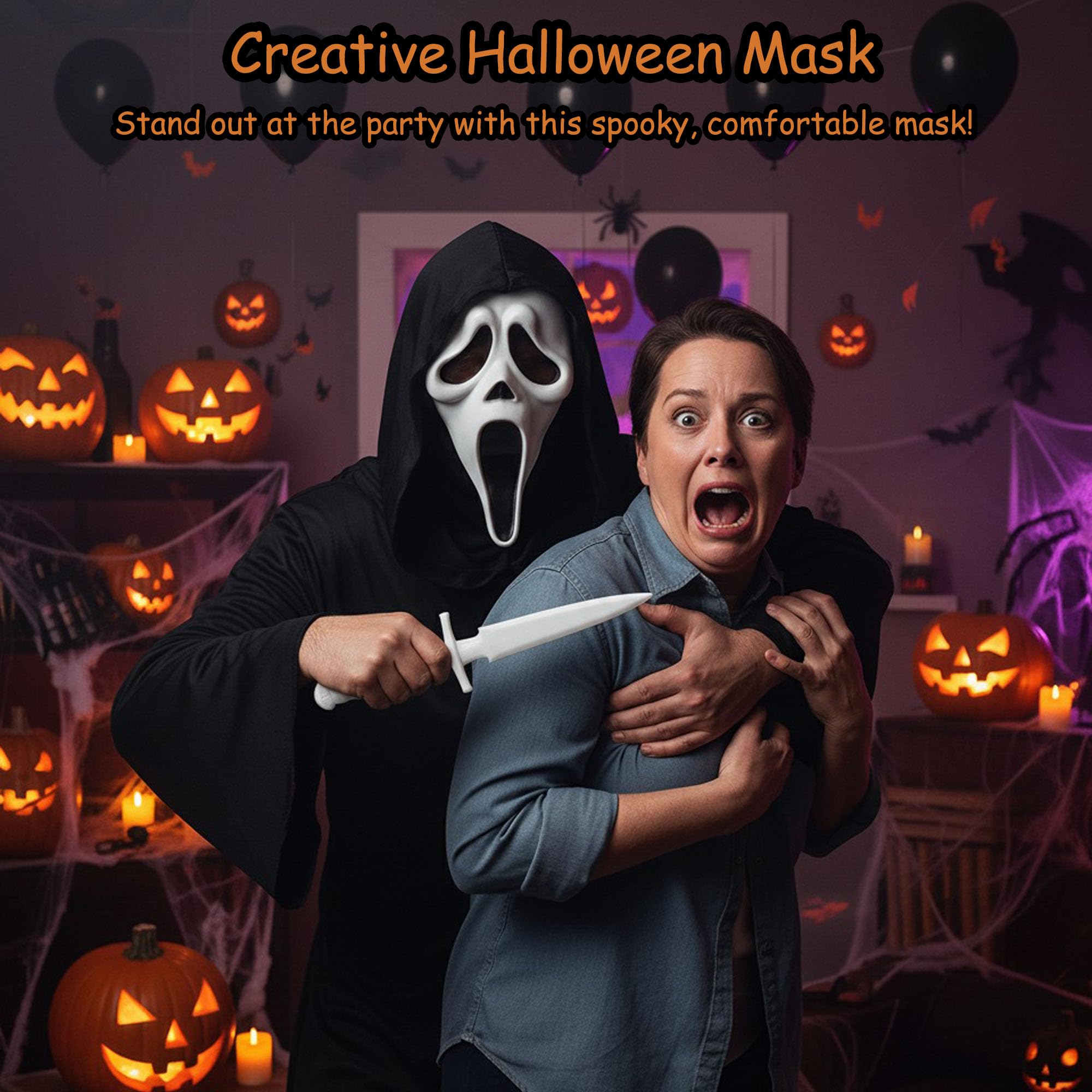 Iconic Movie Design: Instantly recognizable GhostFace mask with exaggerated mouth and hollow eyes. Perfect for Halloween costumes and horror cosplay