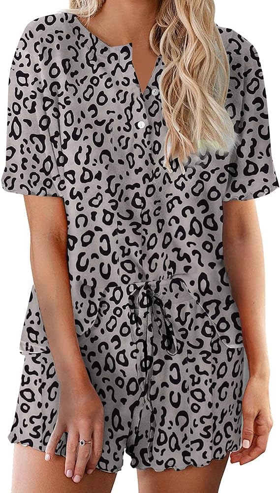 FEATURES: pajama sets for women 2 piece, pj sets for woman, V neck women's pajama sets, short sleeve T-shirt, drawstring elastic waist shorts.