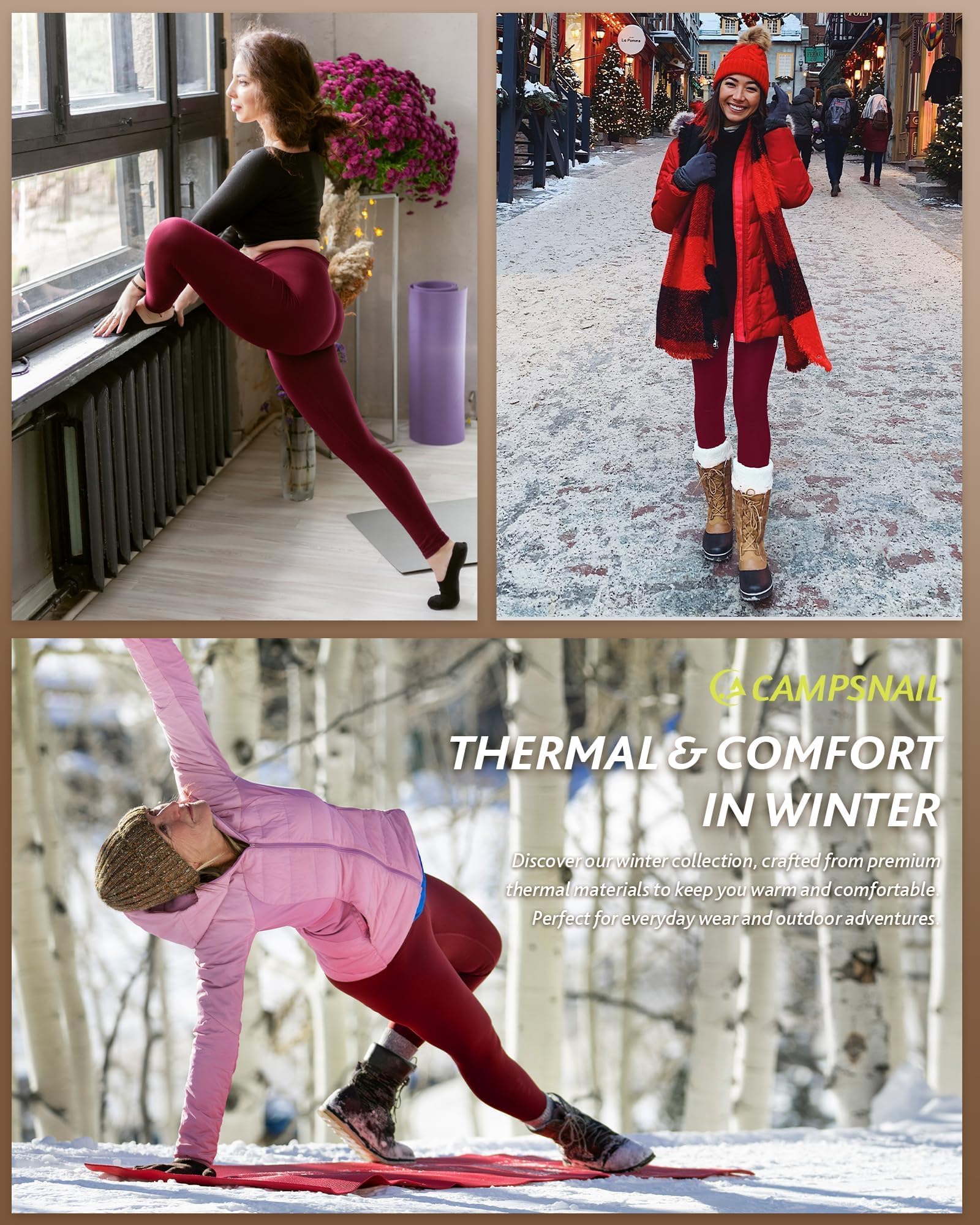 Thermal Fleece Lined Leggings: CAMPSNAIL leggings for women featured a thicked fleece interior to trap heat, keep you warm and comfortable in cold weather. Perfect for hiking, yoga, biking, outdoor running, or trip in winter