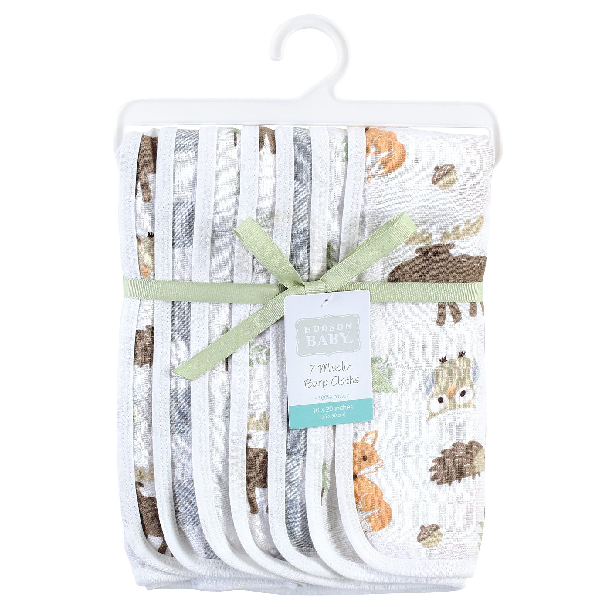 Hudson Baby Unisex Baby Muslin Burp Cloth 7pk, Woodland, One Size