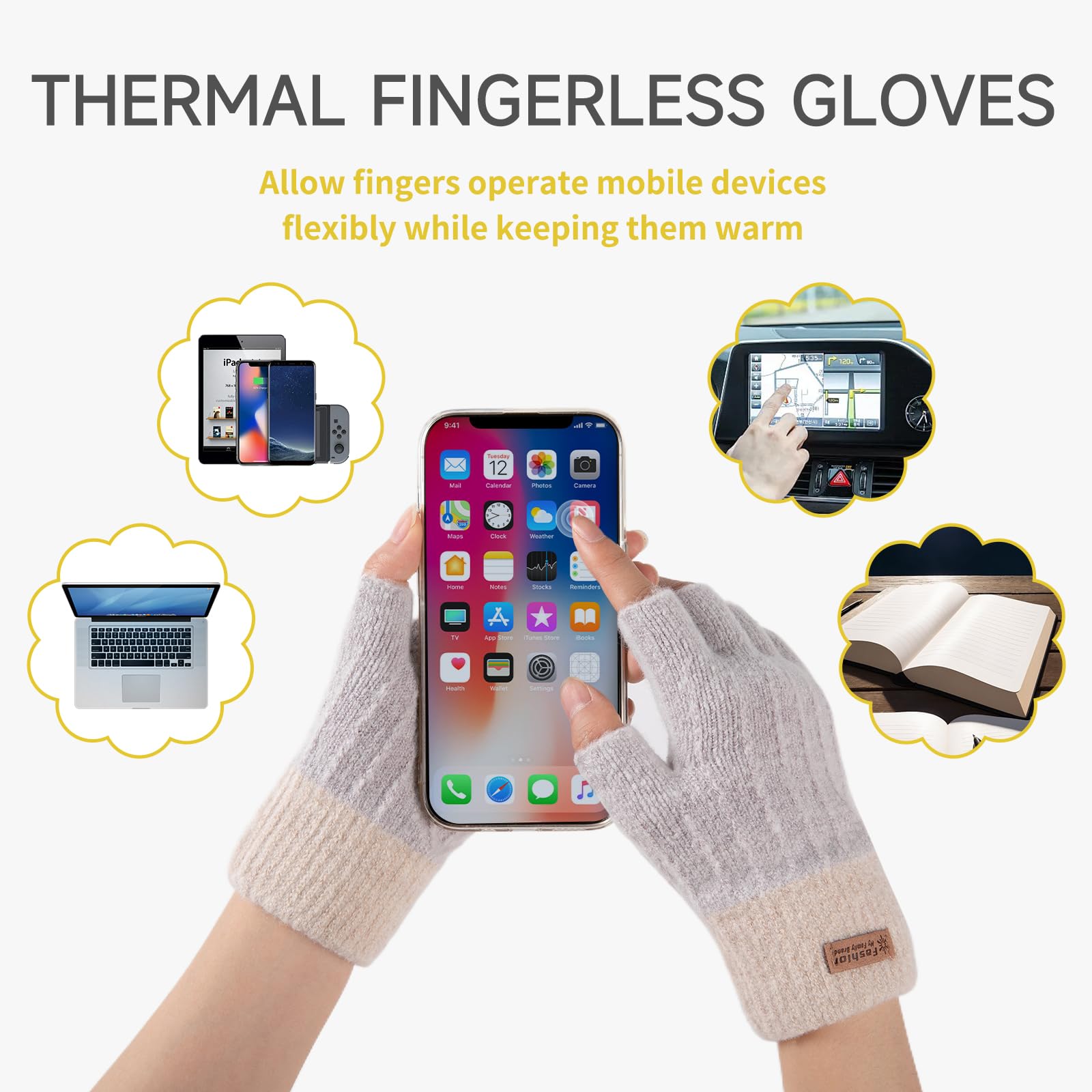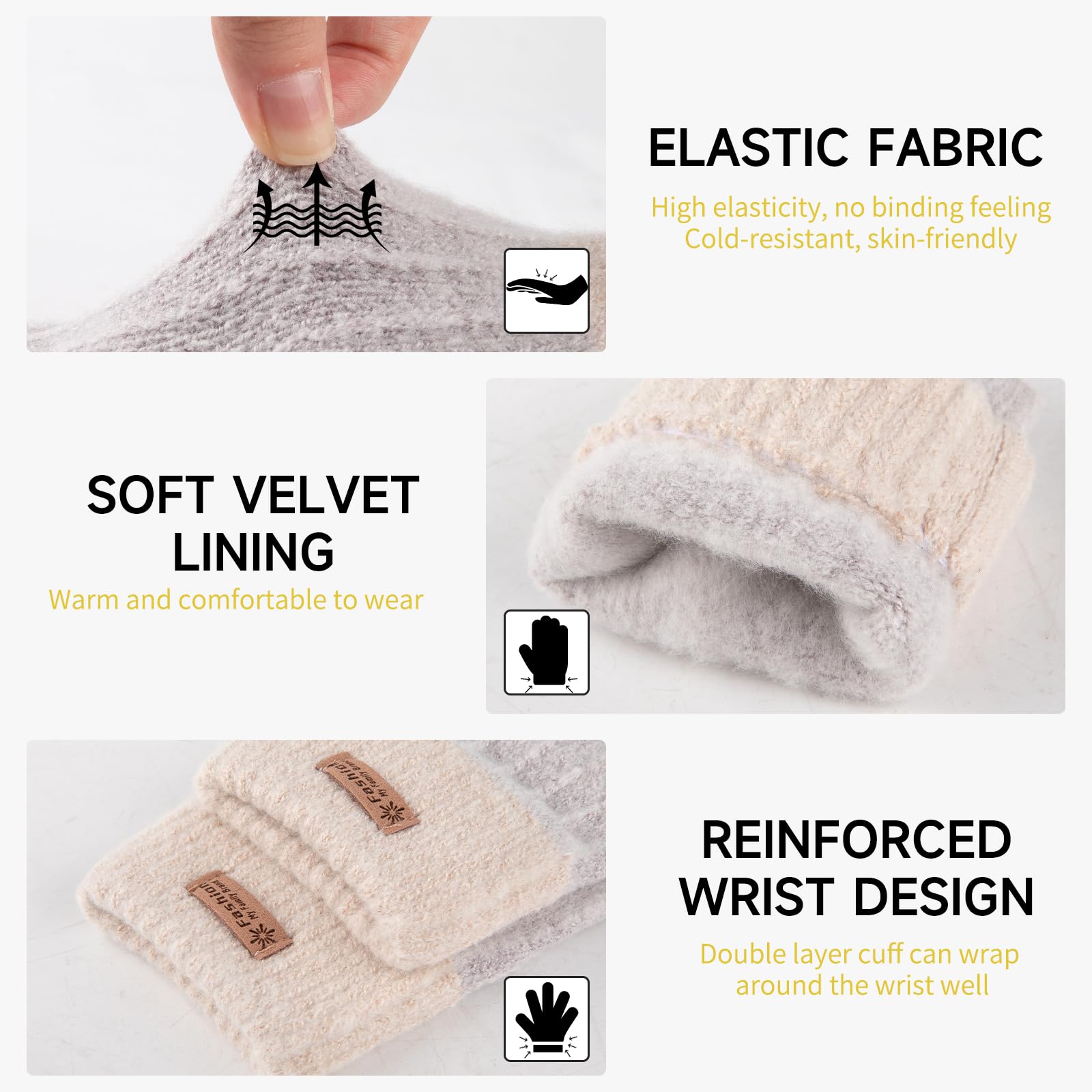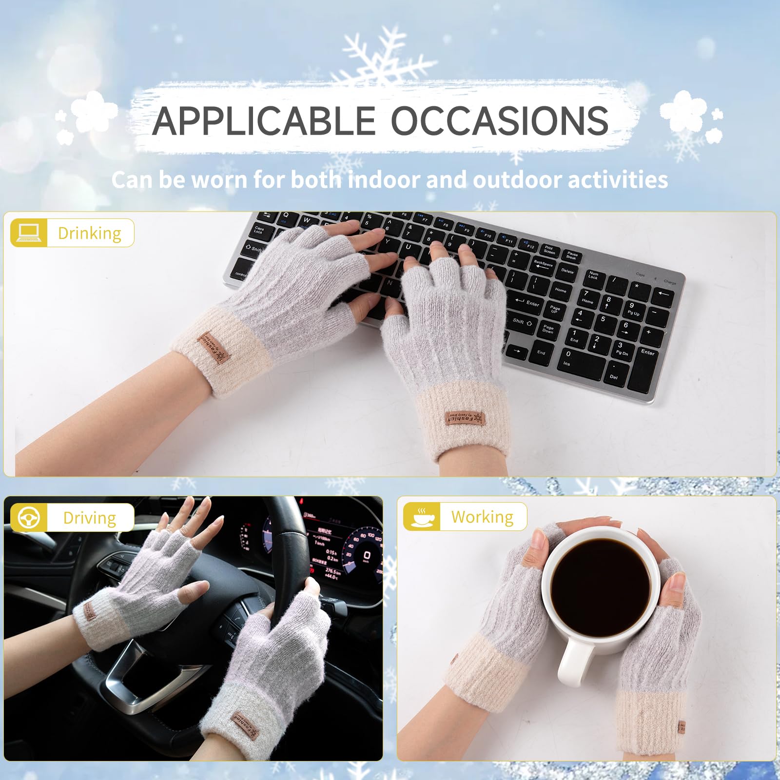 [CONVENIENT HALF FINGER GLOVES]: Our warm fingerless gloves for women with half-finger design for maximum flexibility. You can easily use your fingerless gloves for women warm without removing the winter knitted gloves during using computer or mobile phone, typing, texting, driving, working, learning, running and cycling.
