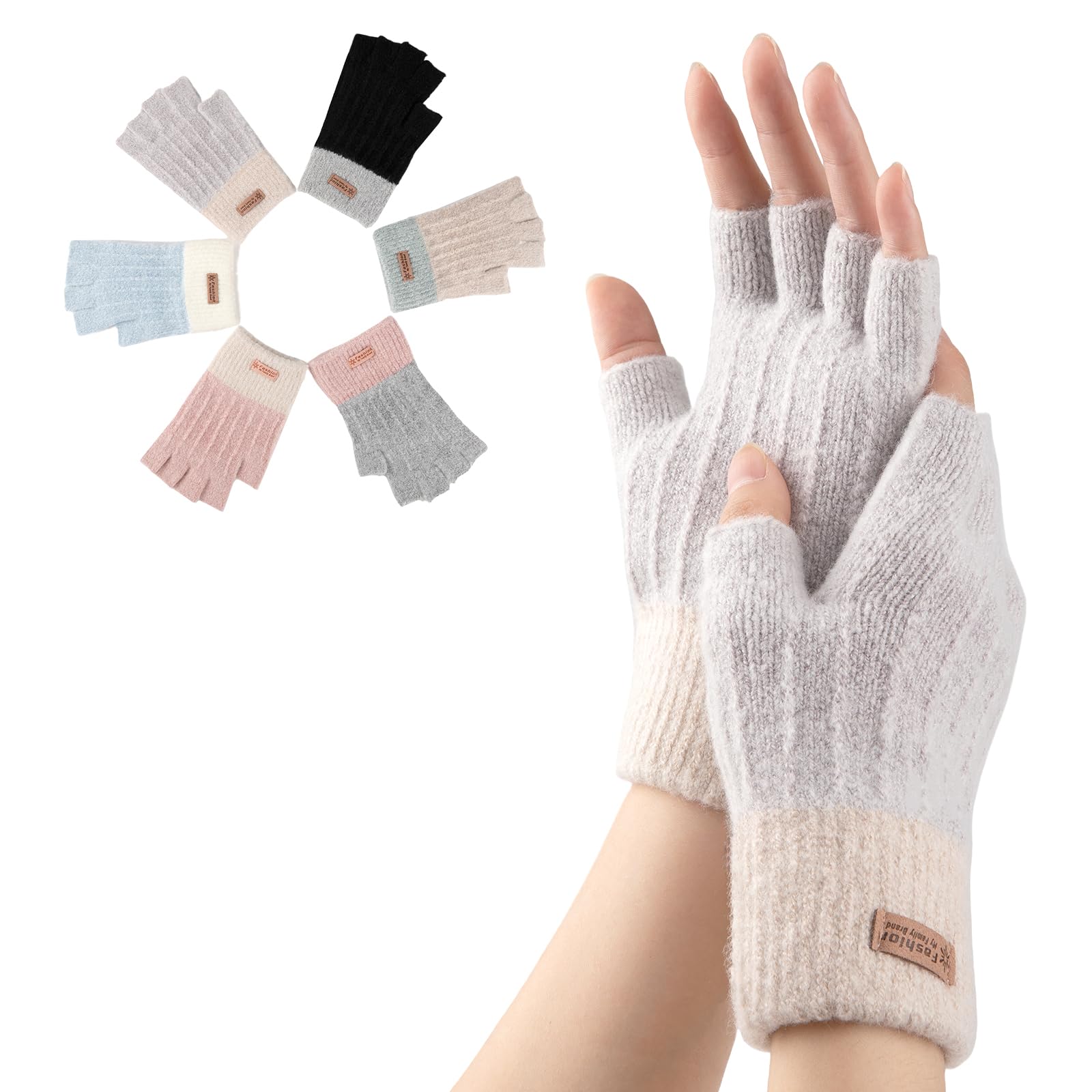 [STYLISH COLOR & PRACTICAL GLOVE]: There are black fingerless gloves women, pink fingerless gloves, purple fingerless gloves, beige fingerless gloves, blue fingerless gloves and grey fingerless gloves. Our gloves feature unique and beautiful color blocking, which can match with your various winter outfits easily.