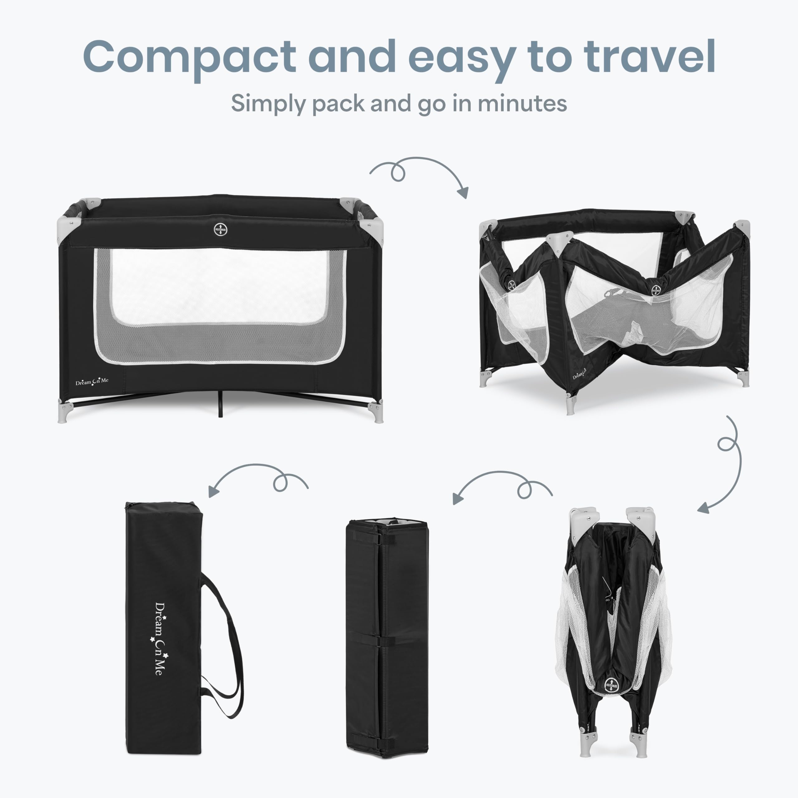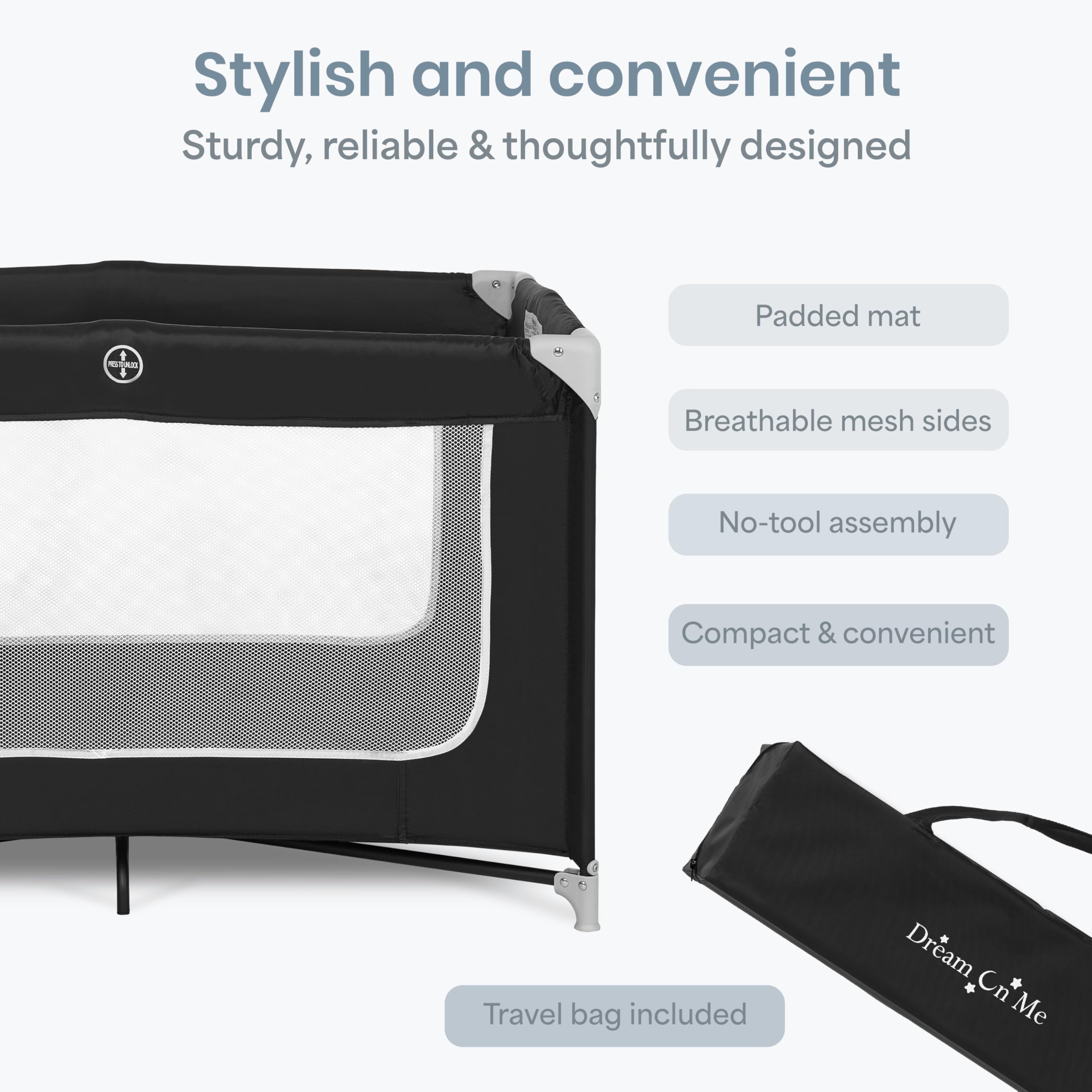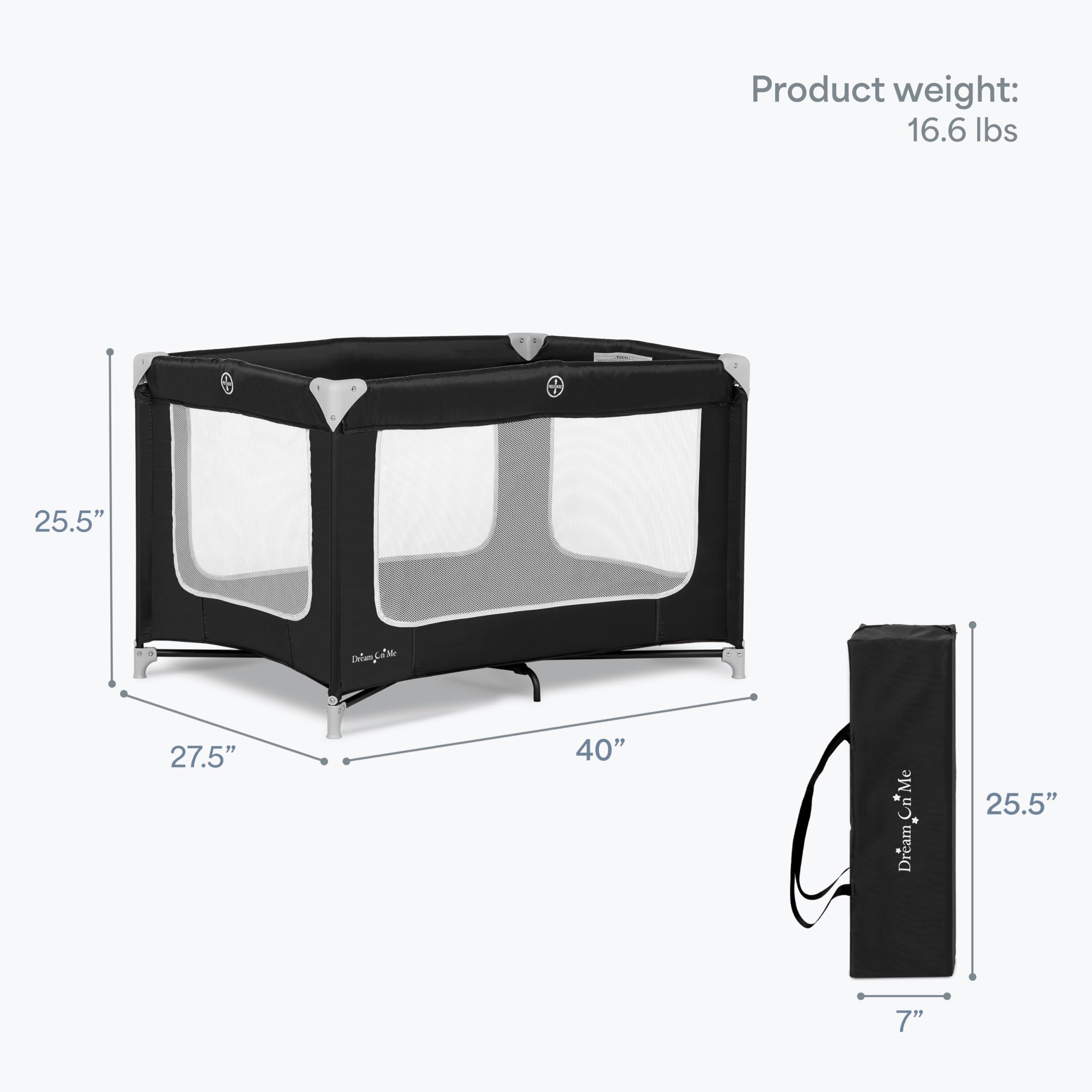 Life with a little one is always on the move, and the Dream On Me Zodiak Portable Playard is designed to keep up with every moment. Created for modern, on-the-go families, this lightweight playard weighs just 16.6 lbs and folds easily into the included travel bag, making it simple to carry, store, or take along for vacations, visits to grandparents, or everyday adventures. Setting up the Zodiak Playard is quick and stress-free. With no tools required, it assembles in minutes and folds down just as easily for travel or storage. A strong, stable frame provides dependable support, giving parents confidence during daily routines at home or wherever the day takes them. Your child’s comfort and connection are always a priority. The playard features full breathable mesh sides that promote healthy airflow while allowing you to keep a clear view of your little one at all times. The open mesh design helps your child feel calm and connected to their surroundings, whether they’re resting or playing. Safety is thoughtfully built into every detail. Designed to meet ASTM safety standards, the Zodiak Playard creates a secure, comfortable environment for children under 35 inches in height and up to 30 lbs. Parents can rest easy knowing their child is supported in a well-ventilated, visible space. Inside, a spacious interior measuring 37” L x 27.5” W x 25.5” H provides plenty of room for play, rest, and diaper changes. The padded mattress offers a cozy, supportive surface, making the playard suitable for use from infant (6 months) through toddler stages. When life gets messy, cleanup is simple. The playard features a removable mattress cover and wipeable surfaces for quick and easy maintenance. It folds neatly into the included tote bag with compact folded dimensions of 7” W x 25.4” H, and is backed by a 1-year limited warranty for added peace of mind.