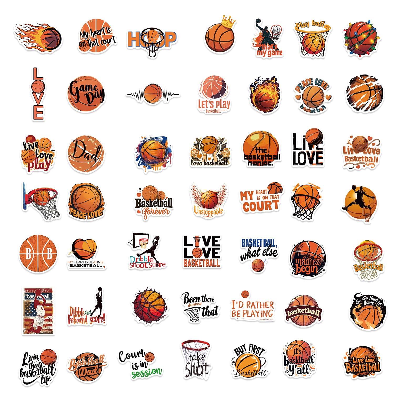 100 UNIQUE BASKETBALL STICKERS :Each stickers pack includes 100 pieces of different stickers. NO DUPLICATES and no random delivery, the pattern shown in the main picture will appear in your package, which are an essential element of little boys or basketball lovers ,all decal stickers are 2 inches to 4 inches in size.