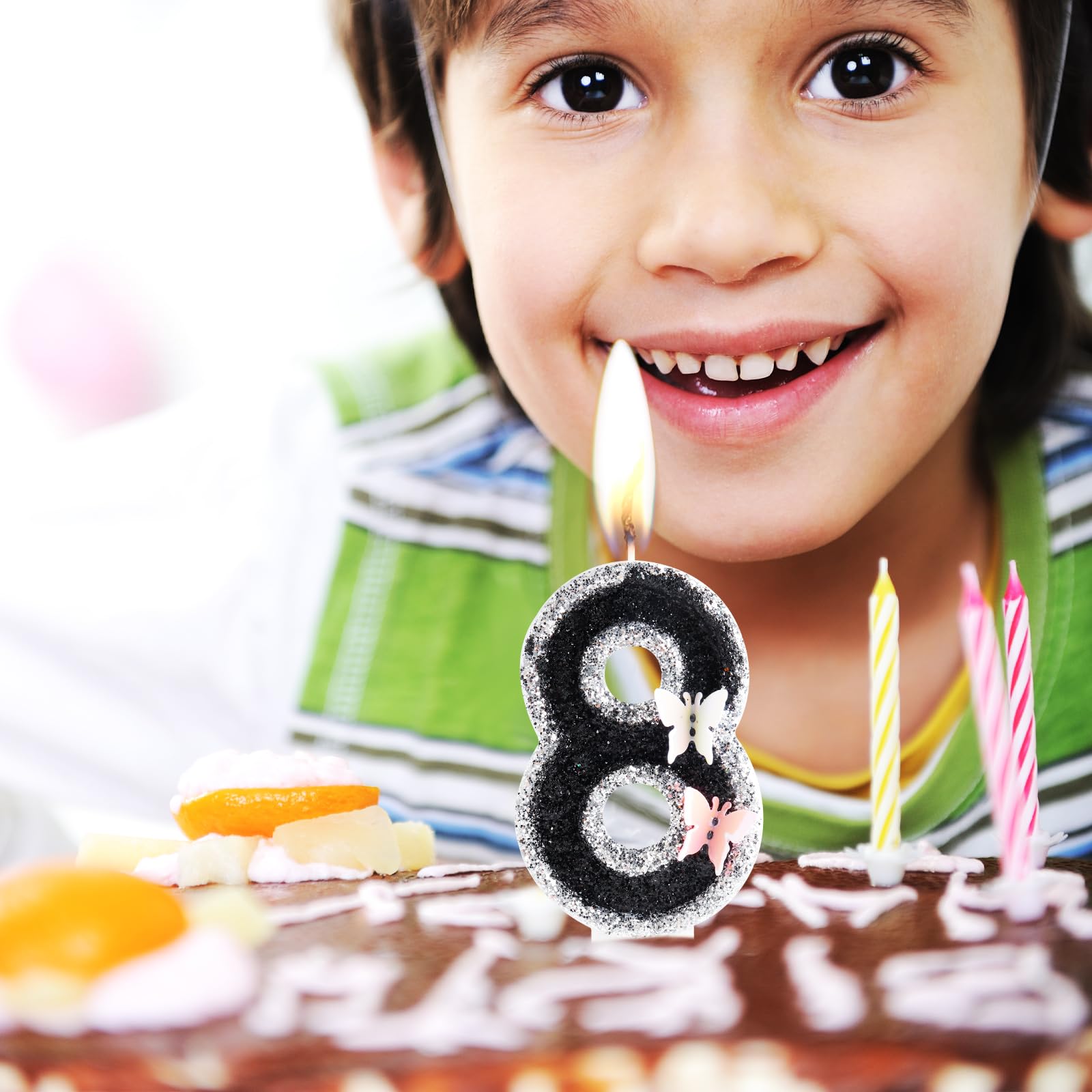 🦋MULTI-USAGE 🦋: This candle is in Silver Black colors, bright and shining in the dark. And it matches with party decorations of various themes and colors easily. It is not only for adult and children's birthdays but for pet birthdays. Ideal cake decoration for many occasions, such as birthdays, anniversaries, retirement parties, family reunions, weddings, Hawaiian parties, even Christmas, must-have items for party cake, bring you memorable and meaningful party.