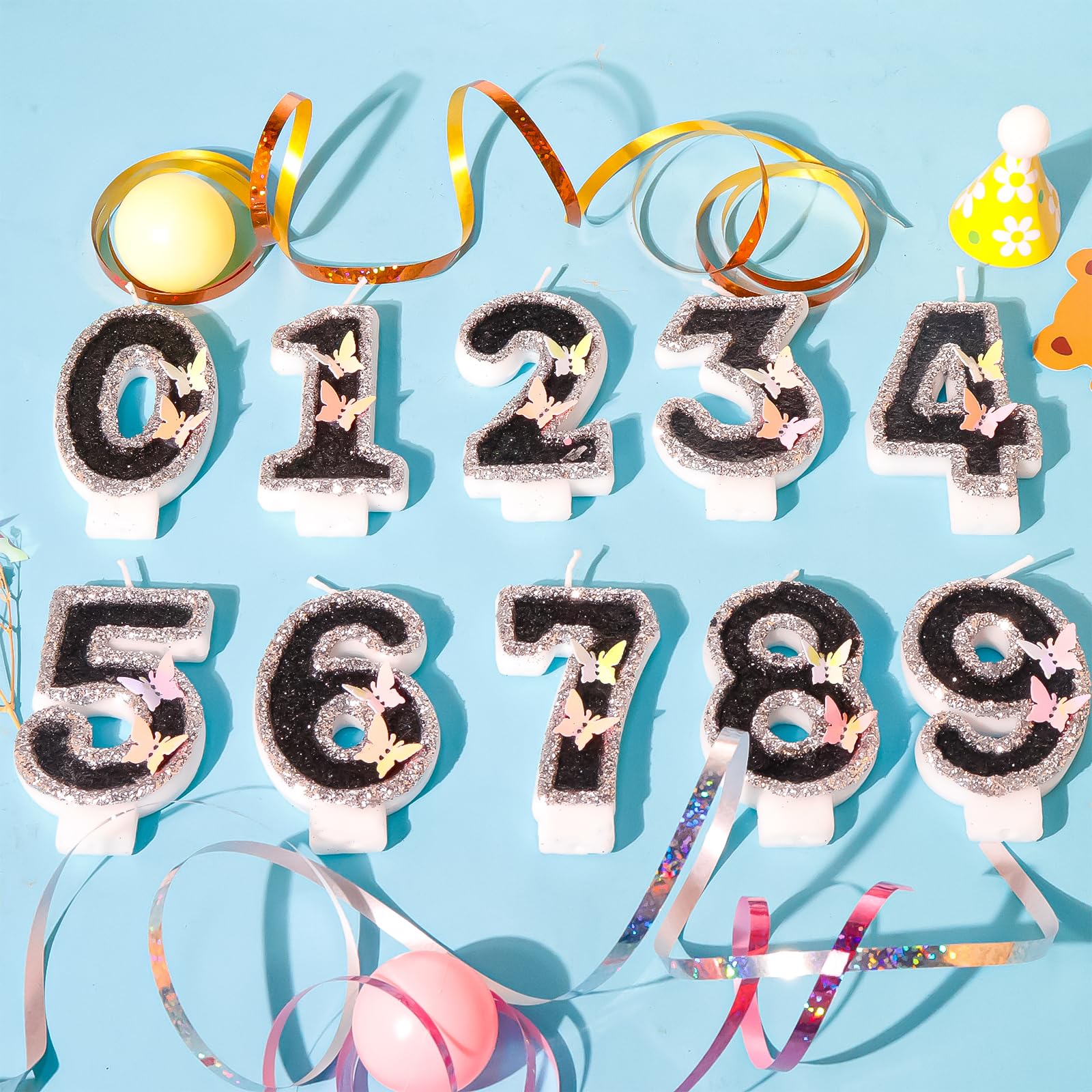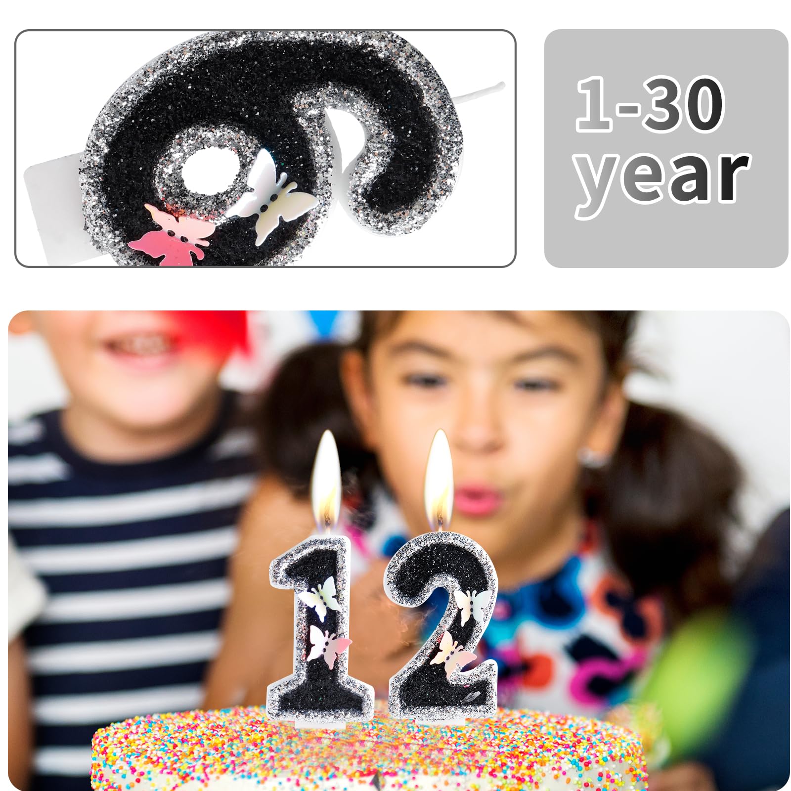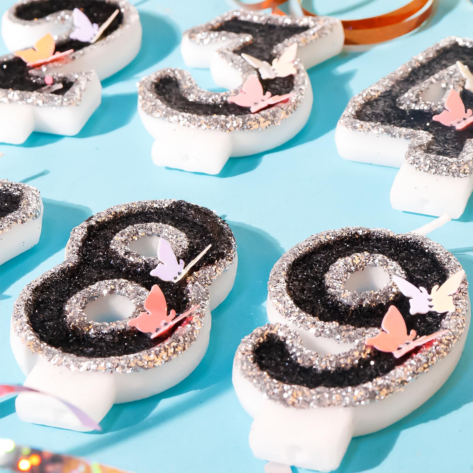 🦋SAFE MATERIAL🦋: Our butterfly birthday party decorations candles are made of environmentally friendly materials, safe and odorless, suitable for birthday cakes of any size or for any celebration like birthday party, anniversary, theme party and etc, ideal Silver Black candles for birthday cakes, happy birthday candle, birthday candles number 21.
