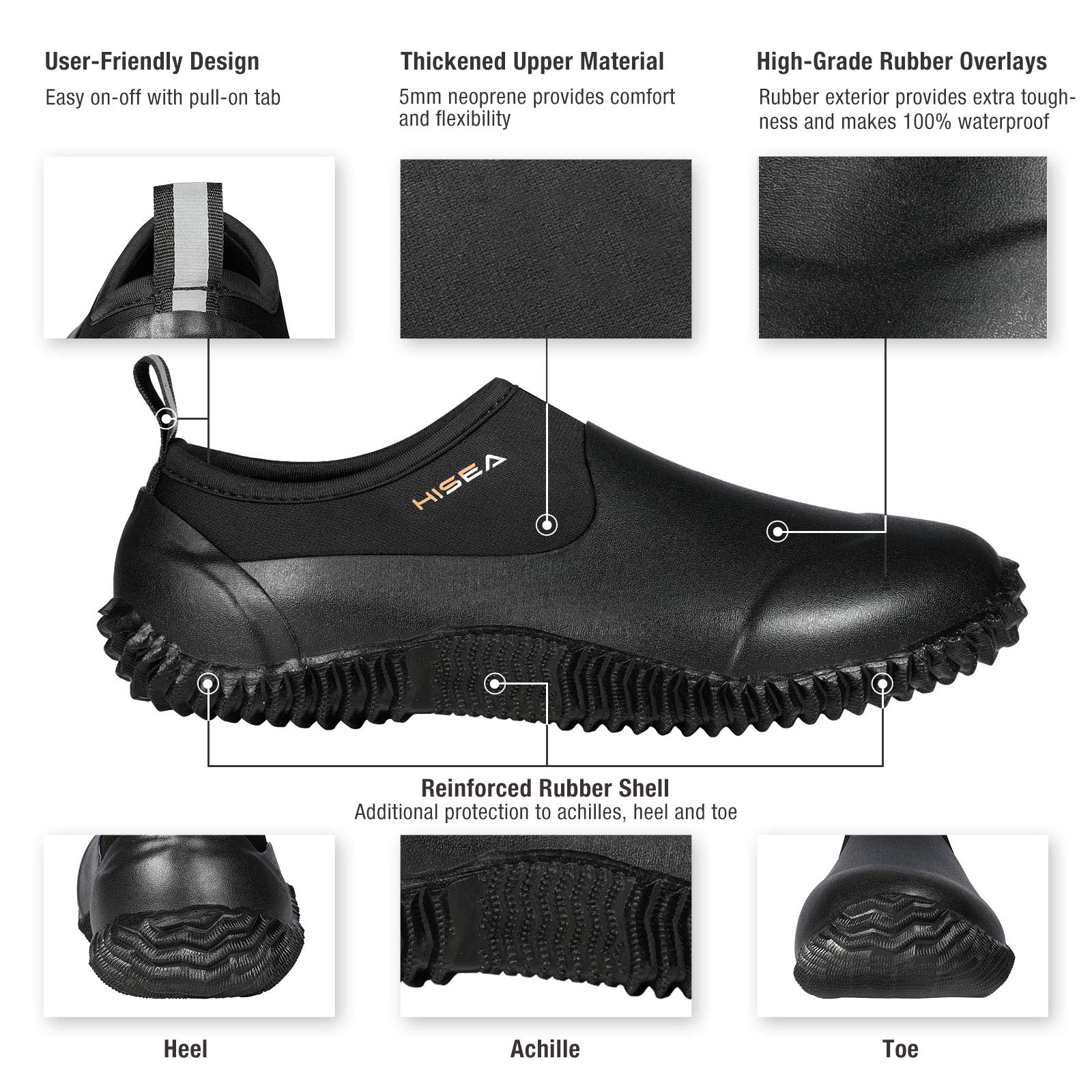 【Suit for Both Men and Women】HISEA Unisex Garden Shoes fit for both men and women, keep you safe on the rainy day and wet conditions. Even when it doesn't rain, they are perfect for gardening, camping, fishing, hunting, walking the dog, mowing, digging, kneeling, farming, yard working, car washing, ect.