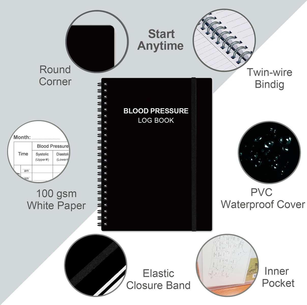 HIGH QUALITY - This blood pressure notebook log size of 5.8" x 8.5", just the perfectly size to fit in your backpack, purse or laptop case. Is used to high quality 100gsm pure white paper, elastic band and a back pocket for extra space.