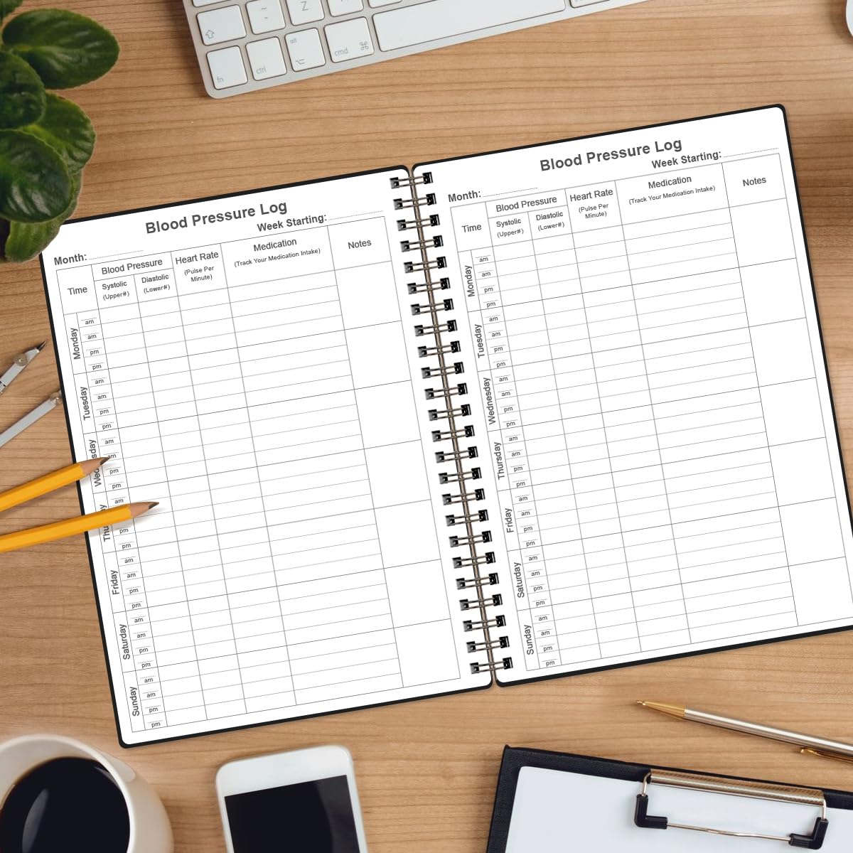 DAILY HEALTH MONITORING - This blood pressure log book enables record your daily blood pressure, heart rate and medication intake at home and log them in this handy easy-to-read log book.